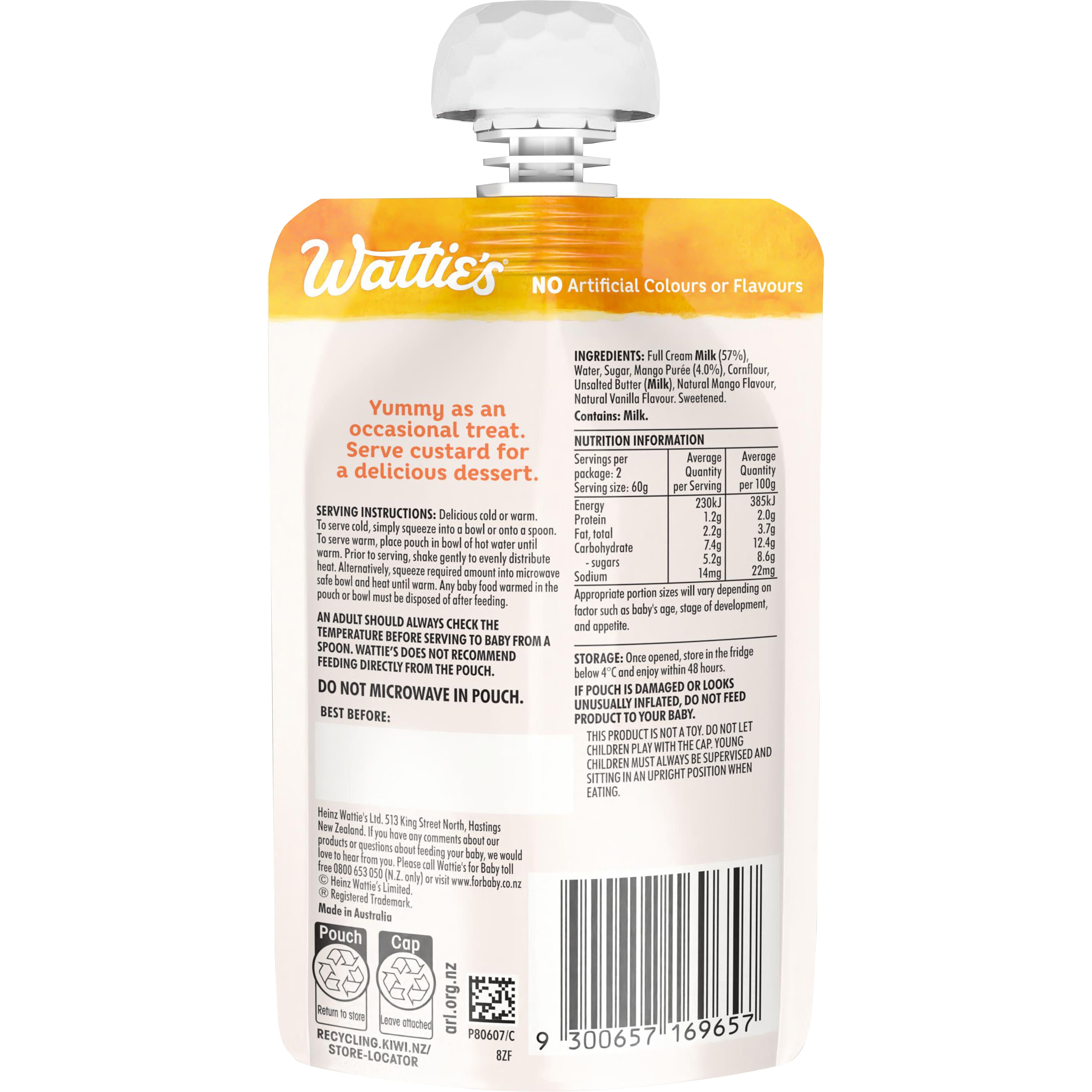 Wattie's® Creamy Mango Vanilla Custard is a smooth custard that is yummy as an occasional treat or dessert for ages 8+ months. Made with no artificial...