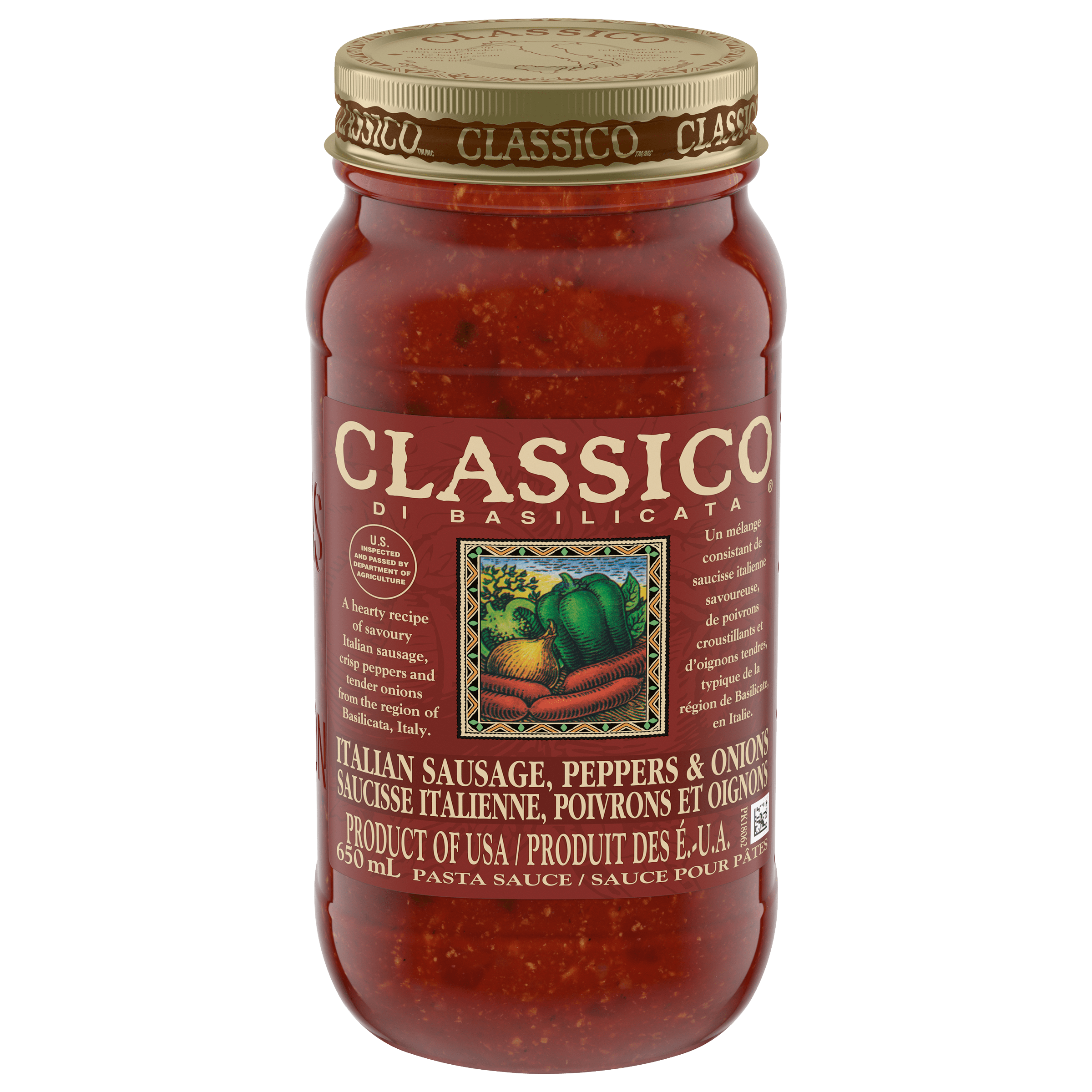 Découvrez les saveurs de l’Italie dans votre propre maison avec la sauce pour pâtes Classico. La sauce pour pâtes à la saucisse italienne, poivrons et oignons Classico di Basilicata propose une recette copieuse de saucisses italiennes salées, de poivrons croquants et d’oignons tendres de la région de la Basilicate, en Italie. Notre sauce est faite avec les meilleurs ingrédients, y compris des tomates mûries à la vigne, du fromage aromatique et de l’huile d’olive, avec une sélection des meilleures herbes et épices pour compléter sa saveur distincte. Pour préparer, il suffit de laisser mijoter à feu doux, en remuant de temps en temps, puis de servir sur vos pâtes préférées. Essayez notre sauce pour pâtes sans gluten dans un four à pâtes, superposez-la entre les nouilles dans vos lasagnes ou utilisez-la pour faire des spaghettis et des boulettes de viande. Assurez-vous de réfrigérer notre pot de sauce de 650 ml après ouverture. Classico apporte des recettes authentiques d’inspiration italienne chez vous depuis plus de 25 ans. Nous le faisons comme vous le feriez.
