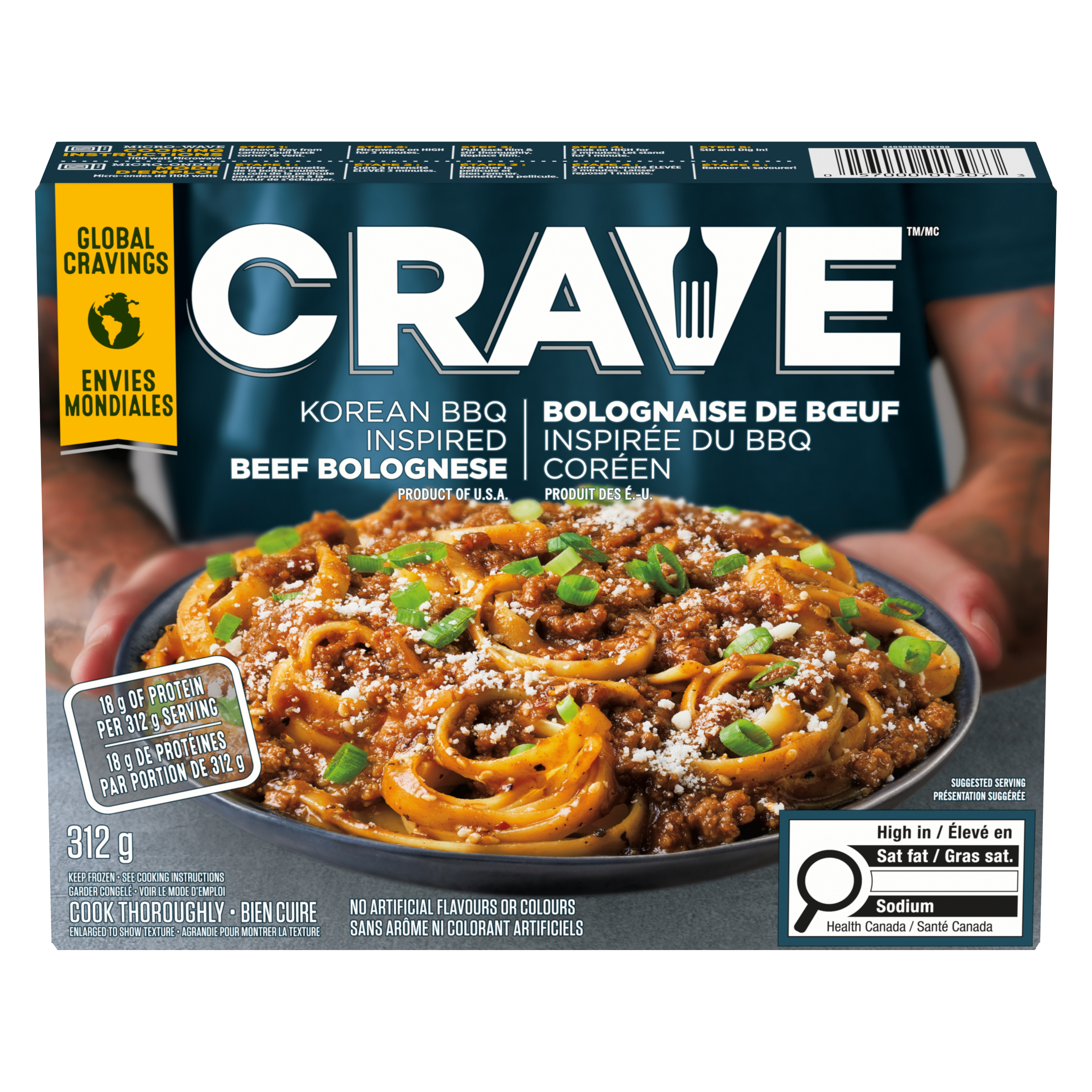 Nous avons répondu aux prières de tous ceux qui souhaitaient que leurs pâtes contiennent un peu plus de bulgogi. Le bœuf bolognaise façon barbecue coréen CRAVE comprend du bœuf haché copieux associé à une sauce bulgogi fumée, sucrée et salée, subtilement épicée, sur des pâtes aussi bonnes que celles de votre Nonna. La combinaison des saveurs classiques du barbecue coréen avec la richesse de la cuisine italienne était quelque chose dont vous ne saviez même pas avoir besoin – jusqu'à maintenant. Explorez de nouvelles saveurs et faites plaisir à vos papilles avec notre gamme de repas surgelés. Du congélateur à la délicieuse satisfaction, CRAVE est ridiculement bon.