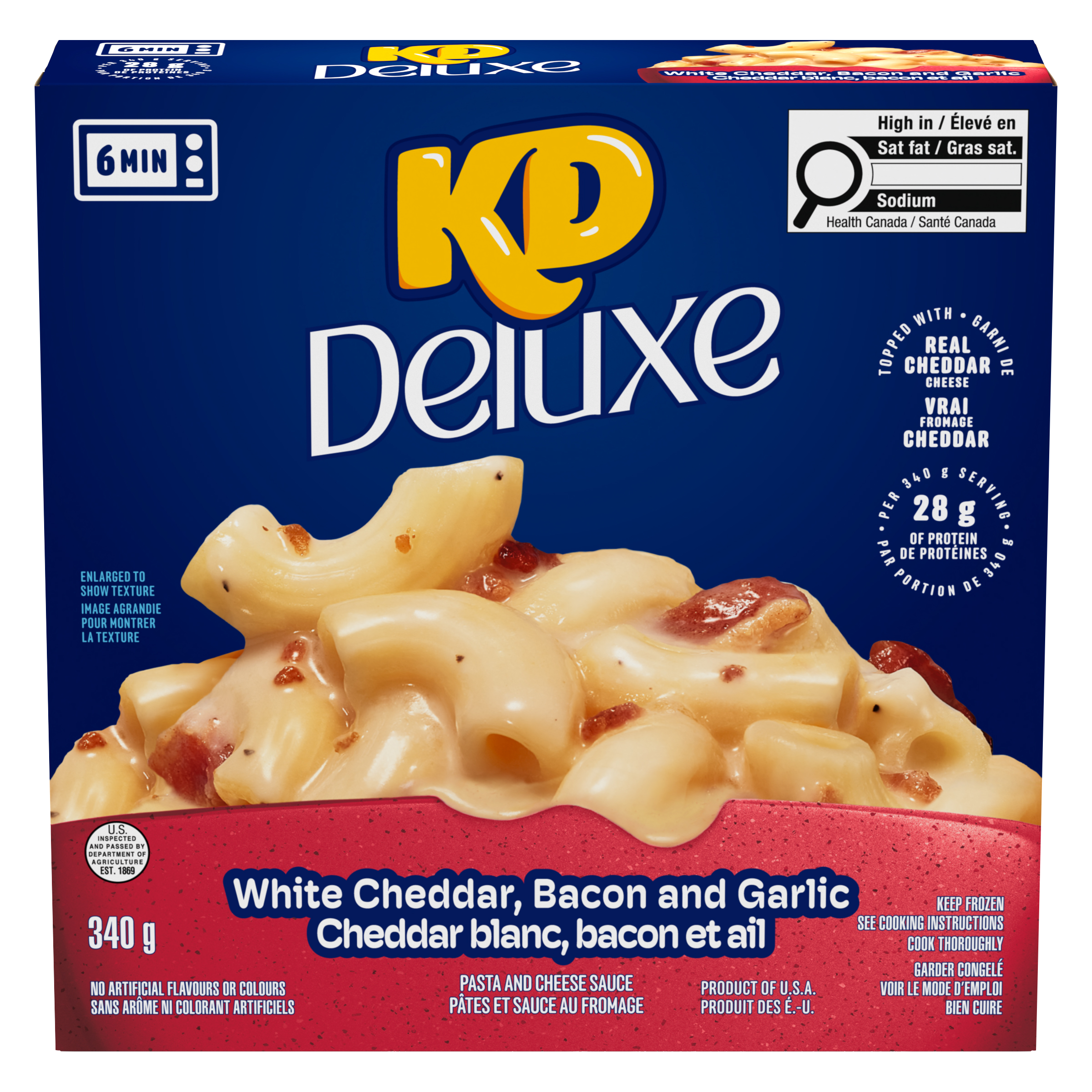 Macaroni et fromage au cheddar blanc, bacon et ail surgelé Deluxe