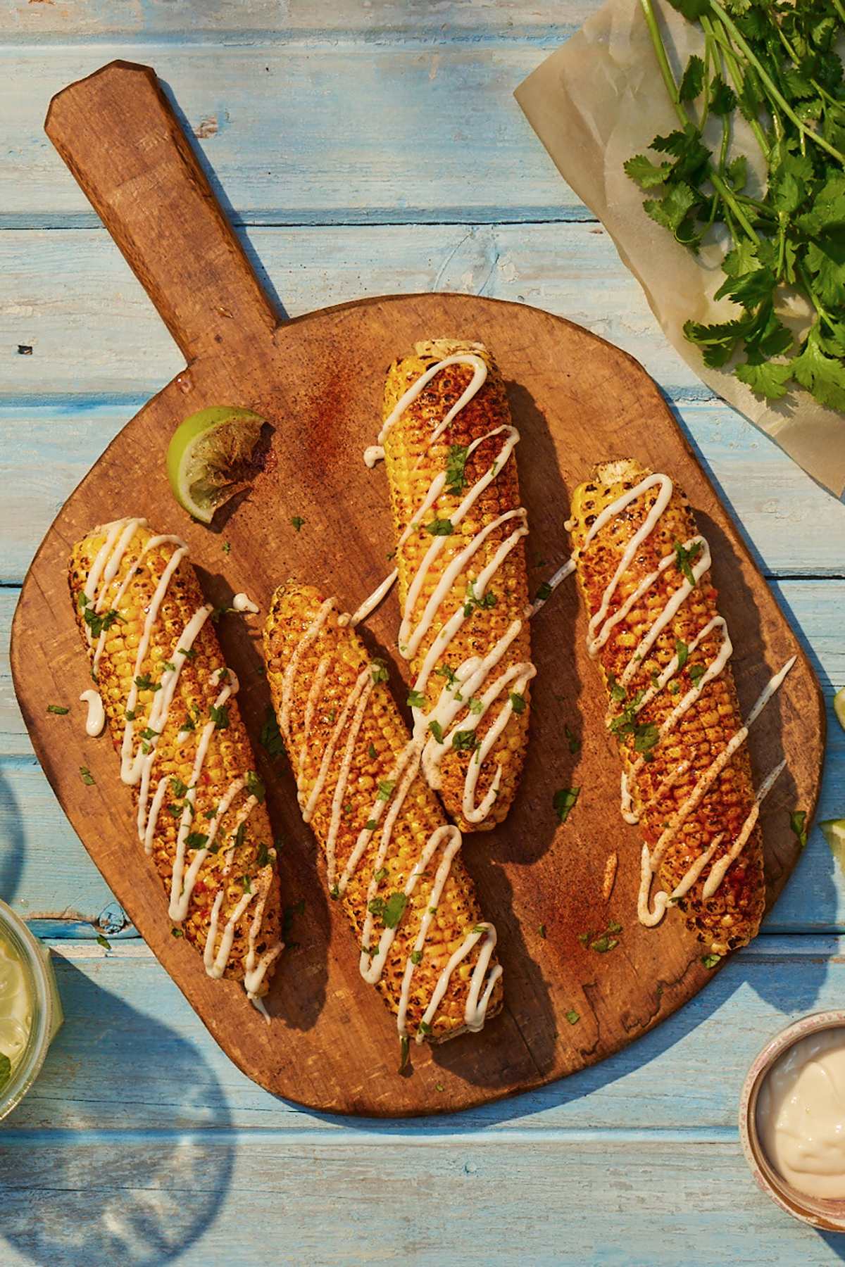 Égoutter le maïs. Griller pendant 20 minutes en tournant de temps en temps, jusqu’à ce que le maïs soit tendre, en le badigeonnant de vinaigrette pendant les 2 dernières minutes de cuisson.