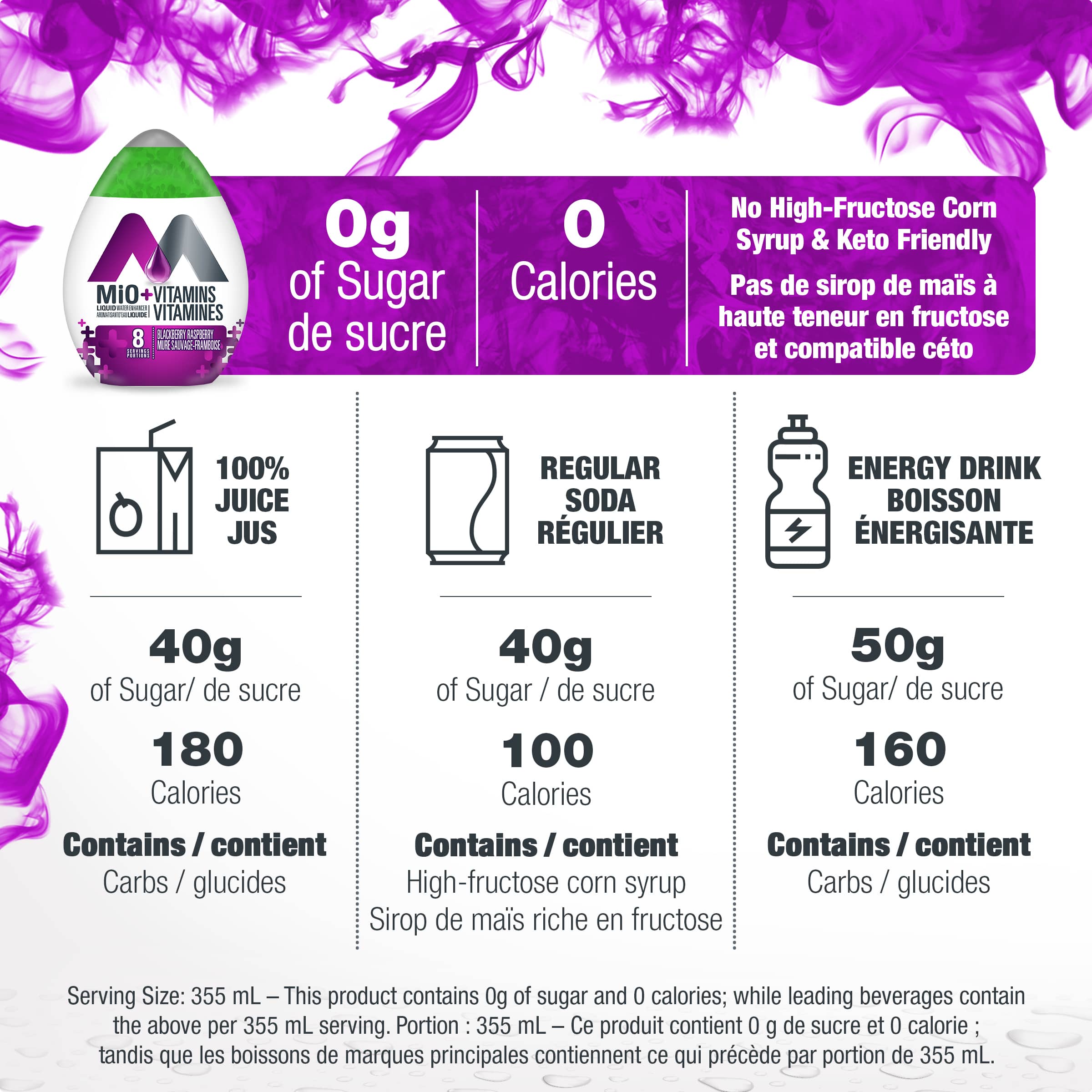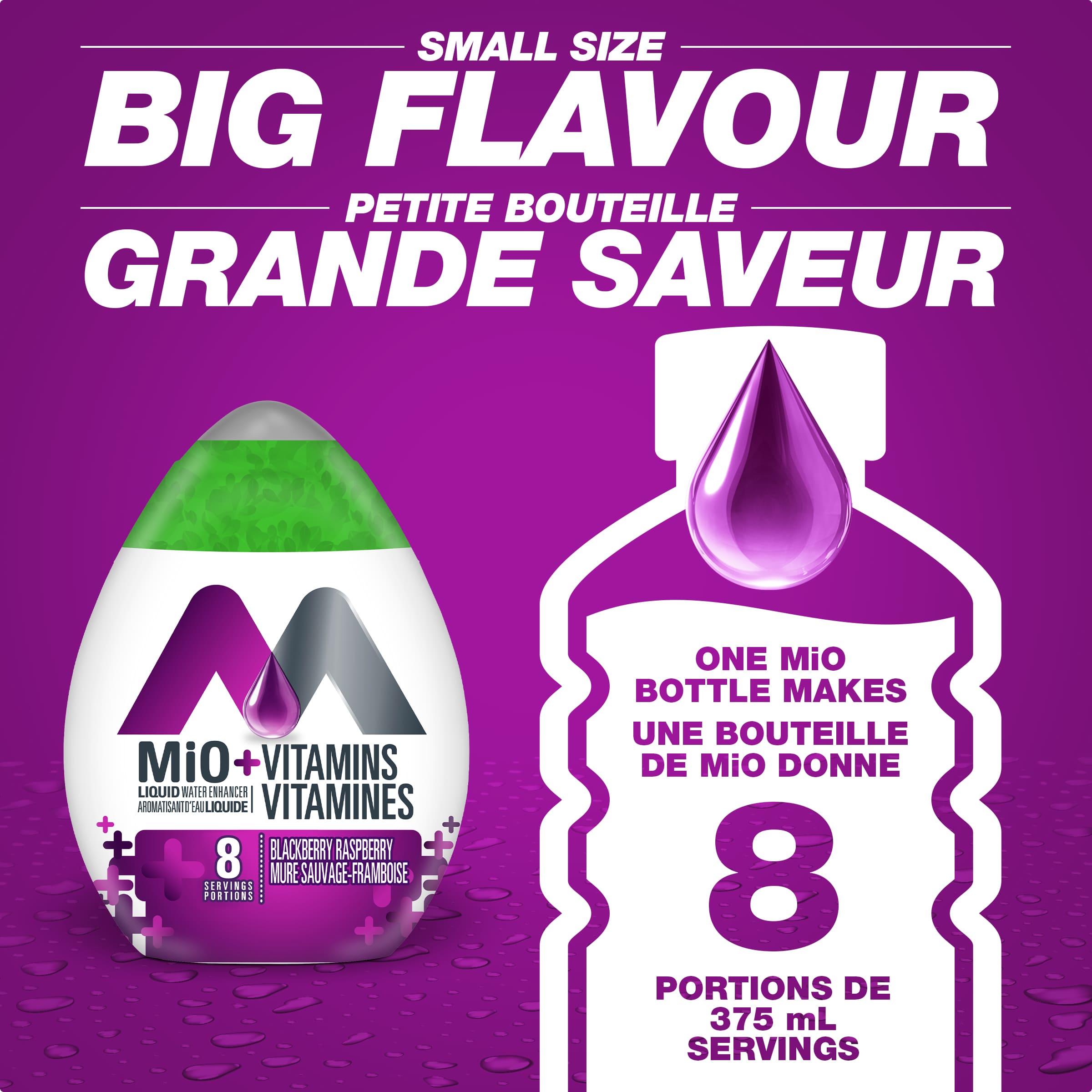 Adieu eau ennuyeuse! Personnalisez votre eau avec l’aromatisant d’eau liquide MiO + Vitamines Mûre-sauvage framboise. Nos gouttes vitaminées...