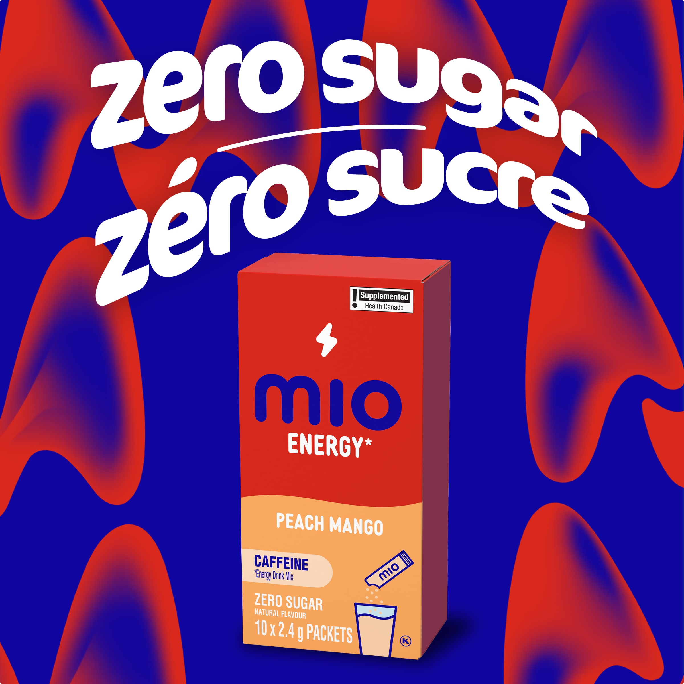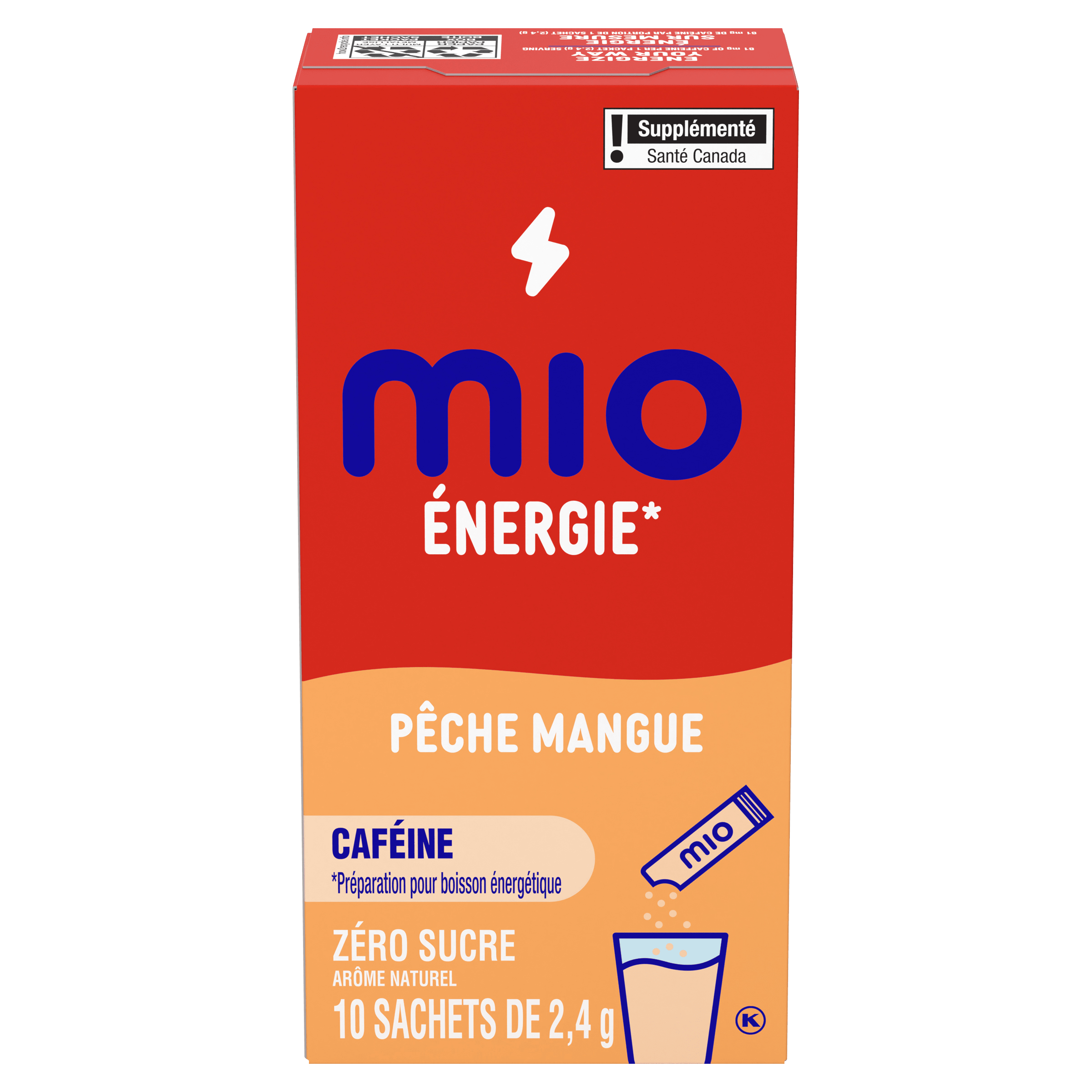Mélange de boisson en poudre à la pêche et à la mangue Energy, sachets de 2,4 g, boîte de 10 ct