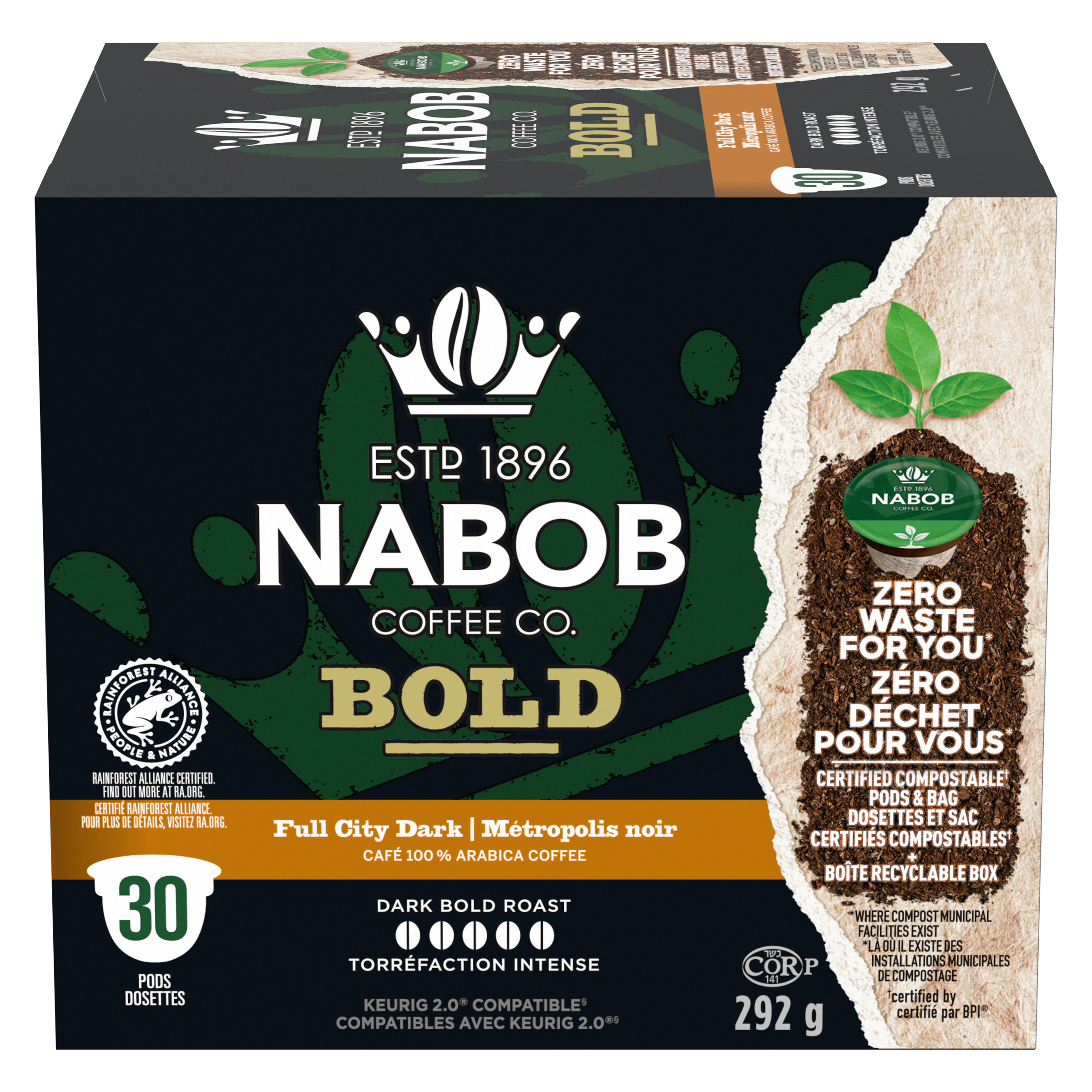 Le café Nabob Métropolis noir de torréfaction corsée est d’une richesse exceptionnelle, idéale pour bien commencer la journée. Intenses, fumées et veloutées, nos dosettes de café Nabob Métropolis offrent une tasse de café audacieuse et délicieuse à tout temps. Le café Nabob est fait à 100% de grains Arabica et contient une saveur douce et pleine de corps. Nos dosettes de café en portion individuelle sont 100 % compostables* et fabriquées à partir de matières végétales qui ne laissent aucun déchet**. Le café Nabob 1896 Tradition contient 60% de contenu Rainforest Alliance Certified. Nous continuons d'alimenter notre passion pour le café, nos communautés et l'environnement. (*certifié par BPI) (**pour vous)