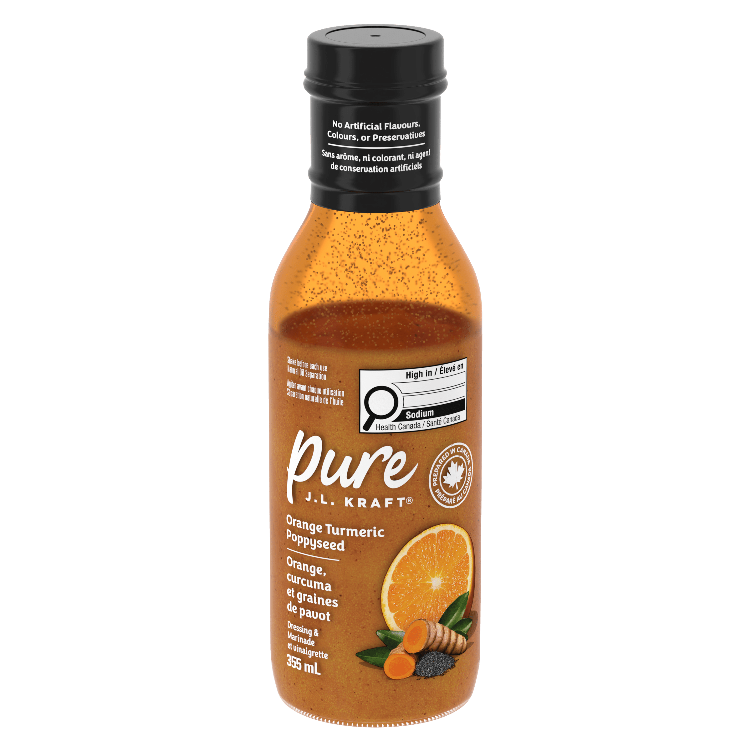 Vinaigrette et marinade aux graines de pavot et curcuma orange, bouteille de 355 ml