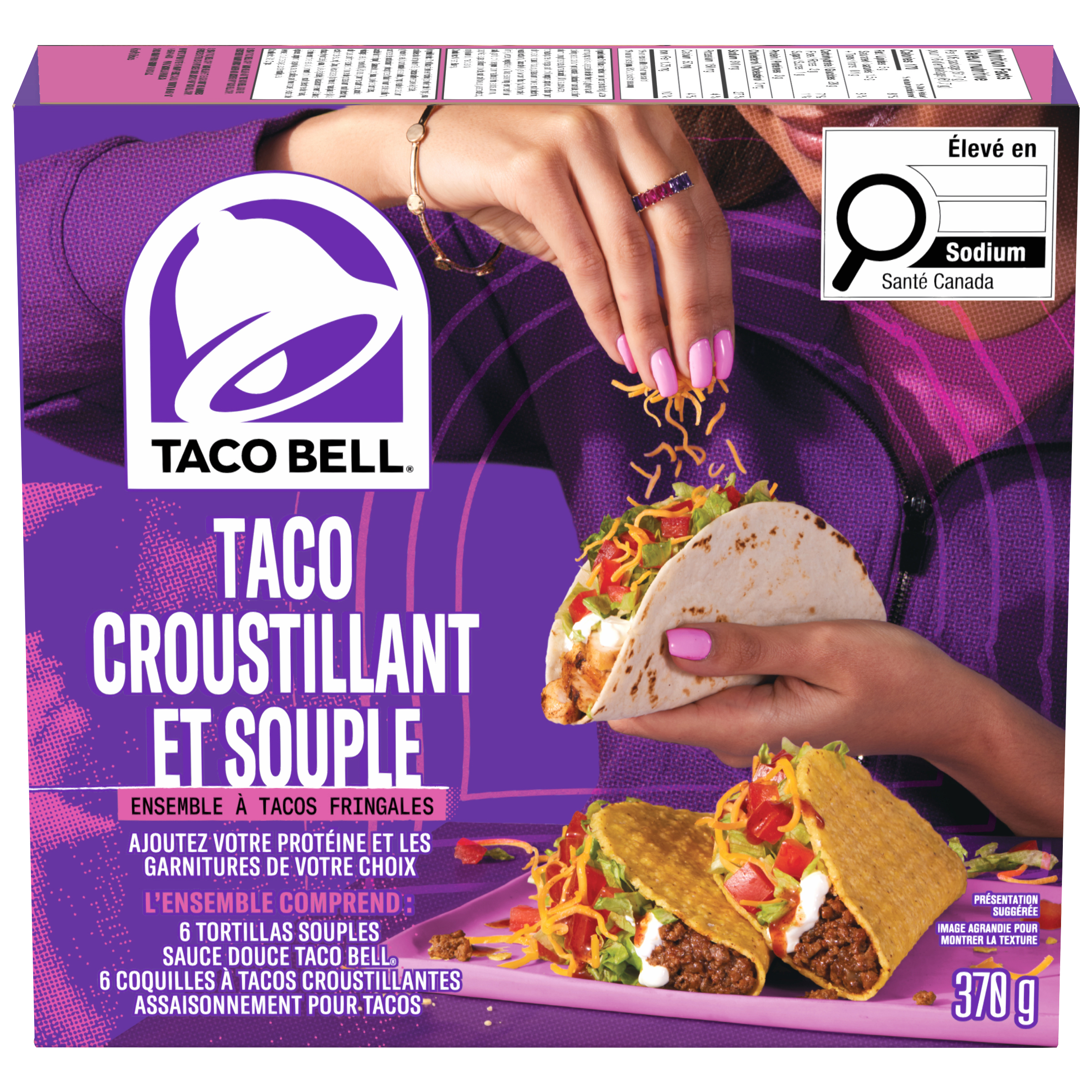 Ramenez la cloche à la maison avec notre Ensemble à tacos fringales Taco Croustillant et Souple Taco Bell. Taco Bell rend l'heure des repas plus...
