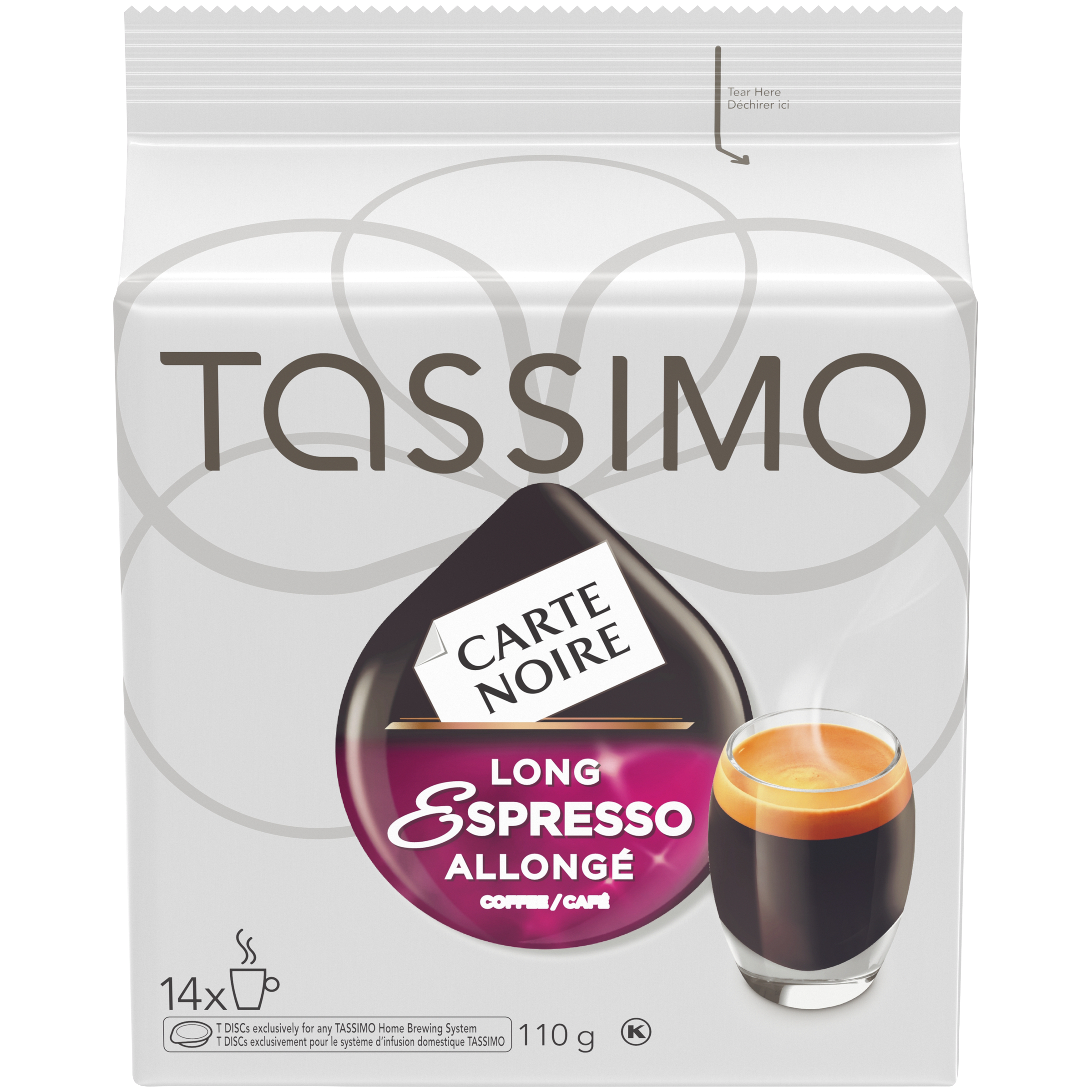 Savourez une tasse d'espresso parfaite à la maison. Les disques de café Espresso allongé Carte Noire Tassimo fournissent un espresso extra-large avec...