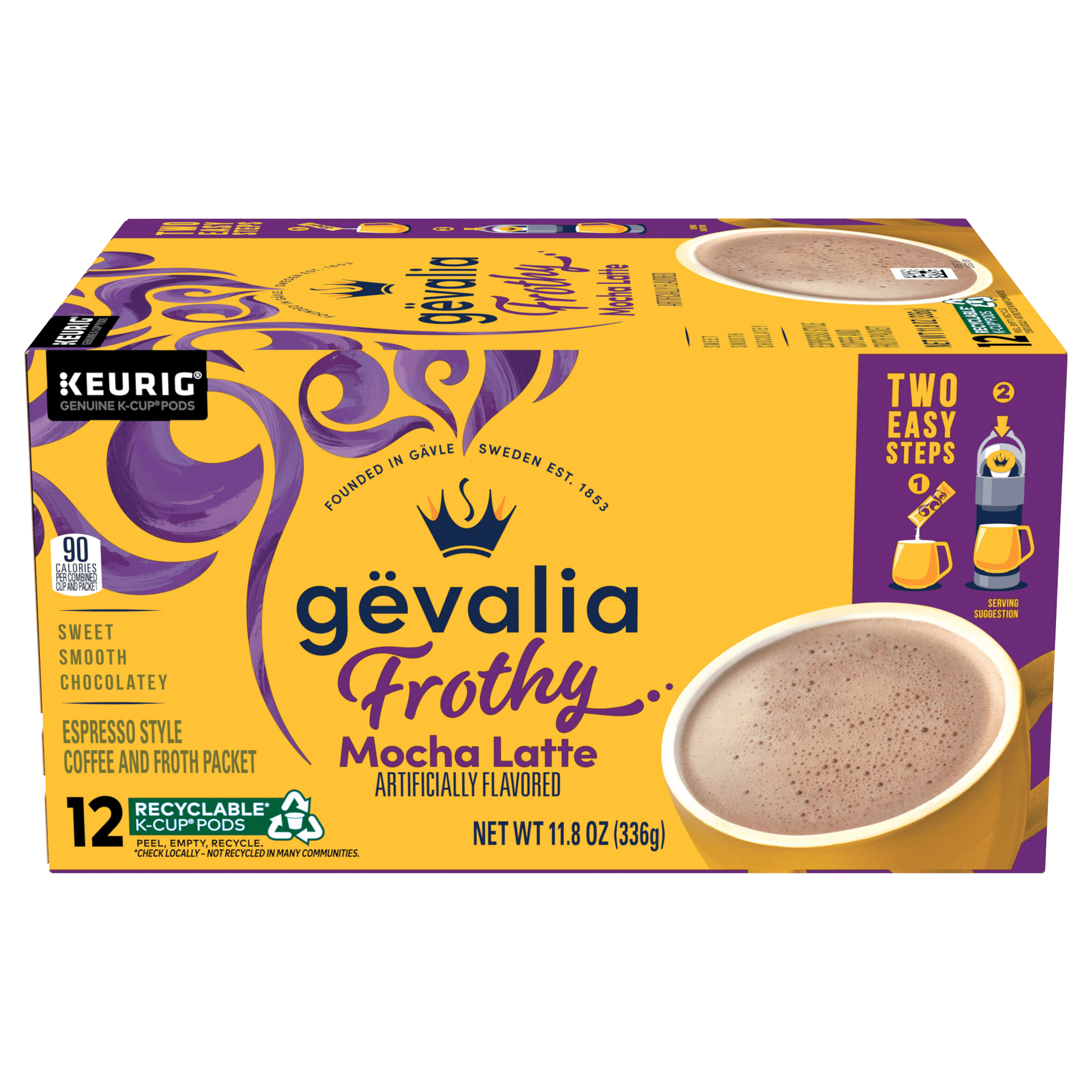 Awaken your inner barista in two simple steps with our Gevalia Frothy Mocha Latte Espresso Style K-Cup® Coffee Pods & Froth Packets Kit. Whip up a...