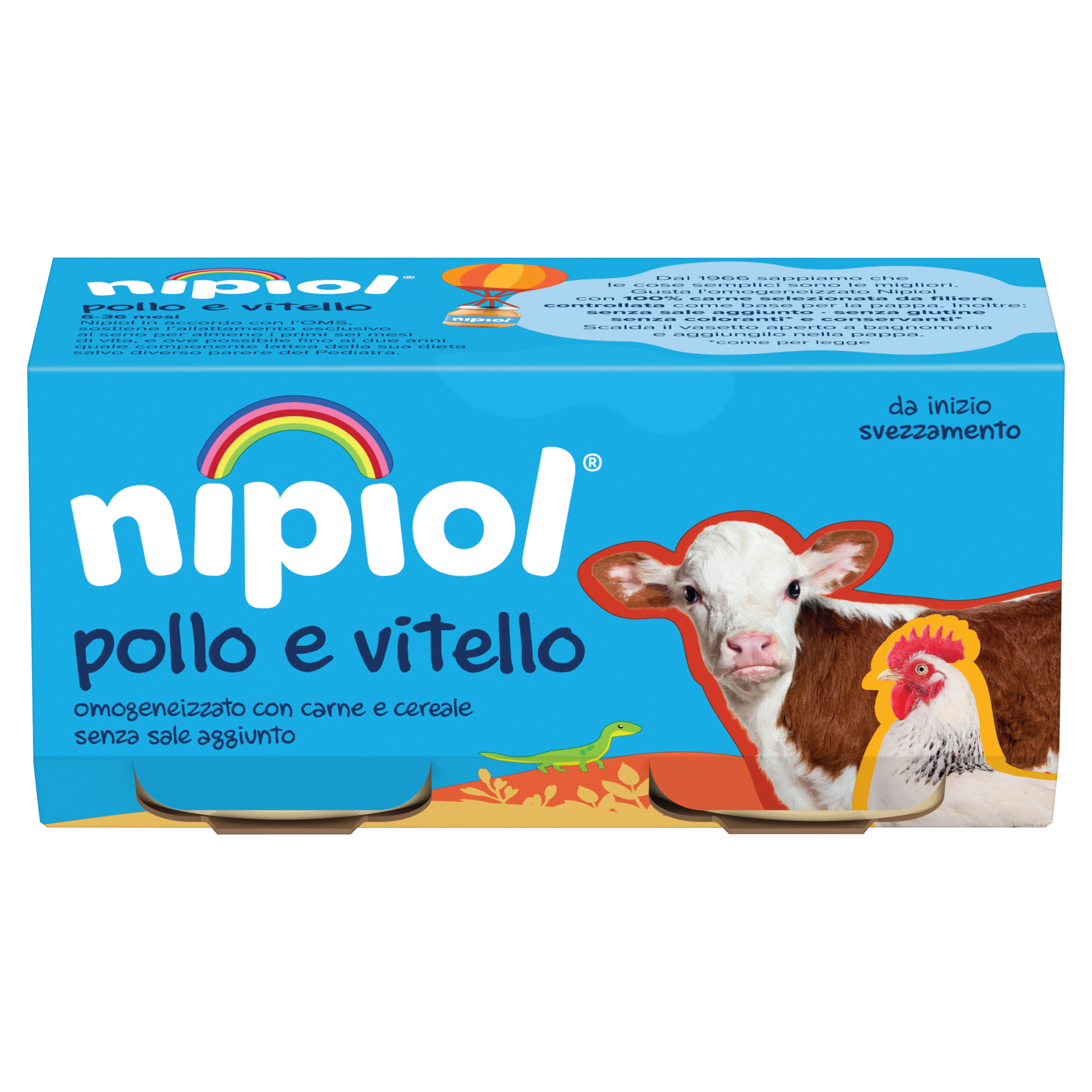 6-36 mesi Gusta l'omogeneizzato Nipiol con 100% carne selezionata da filiera controllata come base per la pappa.