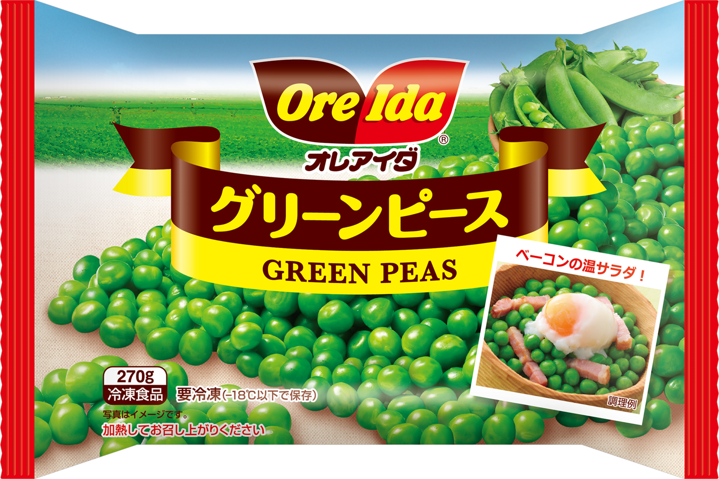 甘みがあってつやの良いグリーンピース。オレアイダの冷凍野菜は、豊かな自然に恵まれた良質で新鮮な材料から作られています。