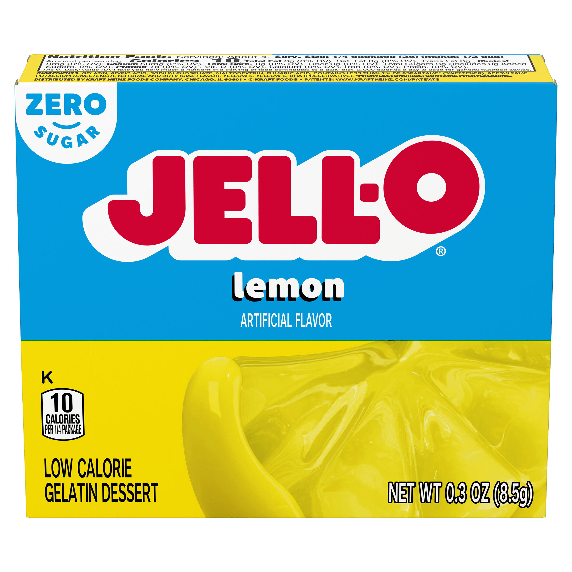Snack happy. Jell-O Lemon Artificially Flavored Zero Sugar Gelatin Dessert Mix lets you add some wonder to your day with a fun snack. Spoon up a smile...