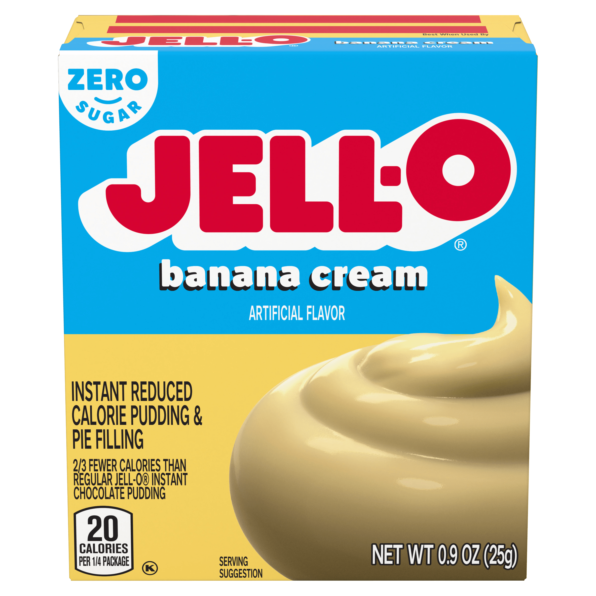 Snack happy. Jell-O Zero Sugar Banana Cream Artificially Flavored Instant Reduced Calorie Pudding Mix & Pie Filling tastes delicious whether you enjoy...