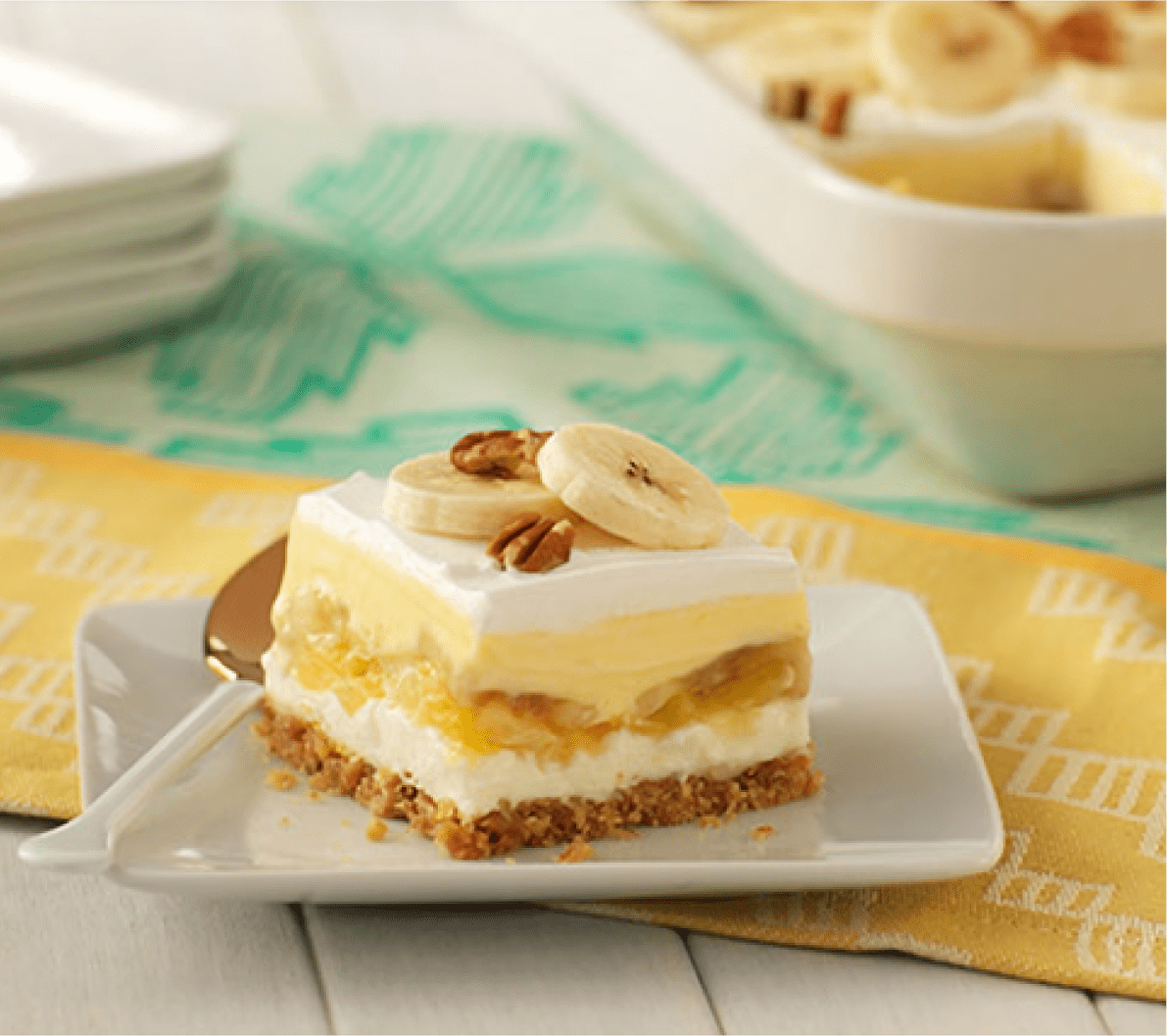 Beat pudding mixes and milk with whisk 2 min. Stir in 1 cup COOL WHIP; spread over banana layer in pan. Top with remaining COOL WHIP. Refrigerate 5 hours.