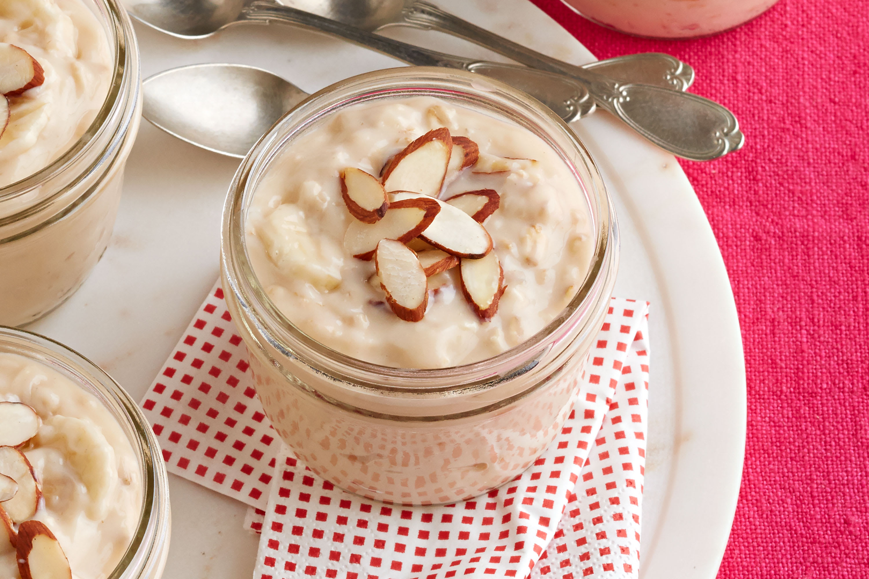 Save some time in the morning by making our Overnight Banana Oatmeal. This Overnight Banana Oatmeal includes sliced almonds, Greek yogurt and more!