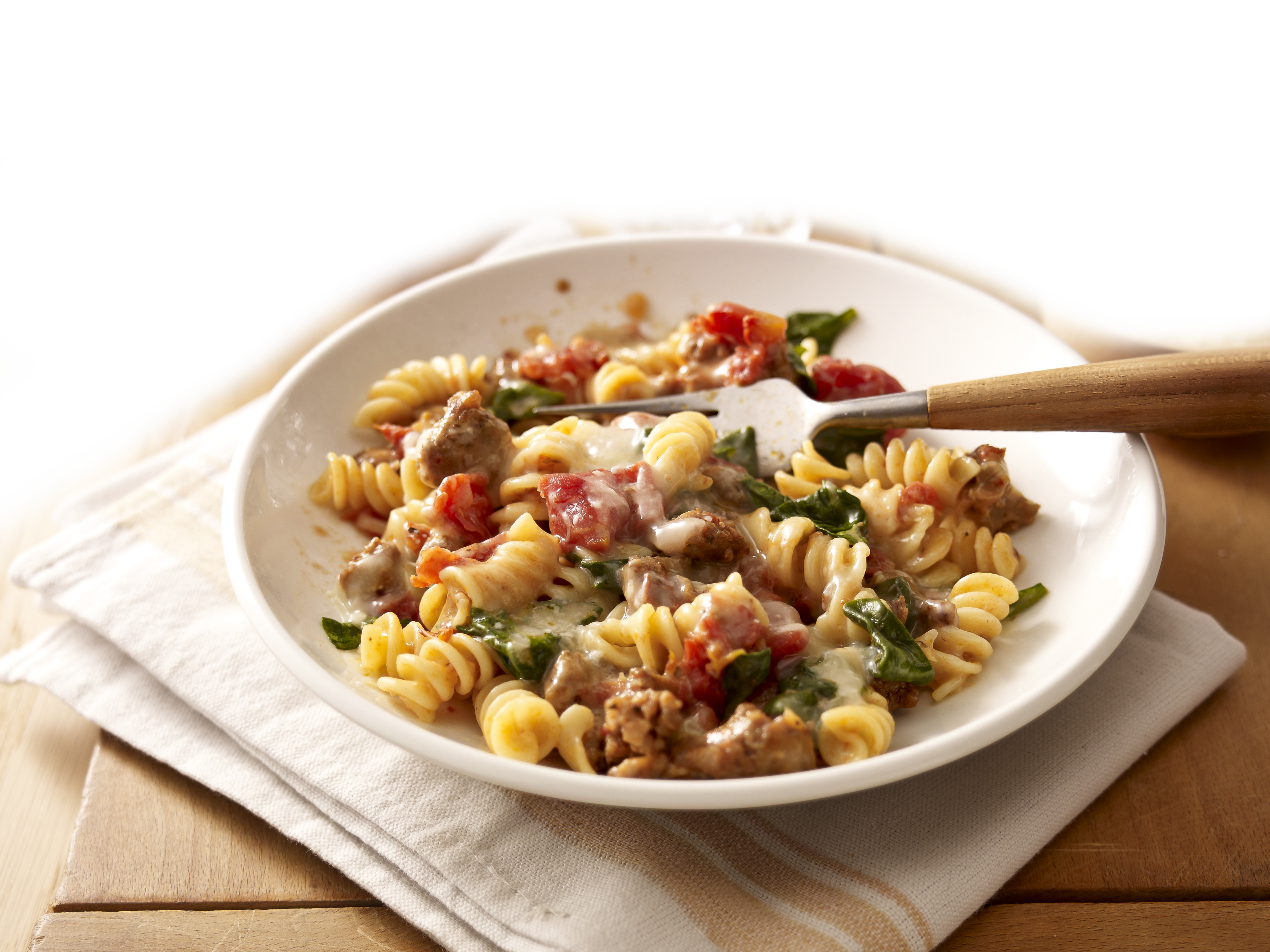 Stick to your smart eating plan with our Tomato & Spinach Pasta with Sausage! This pasta with sausage dish presents old-world flavor in a new-world dish.
