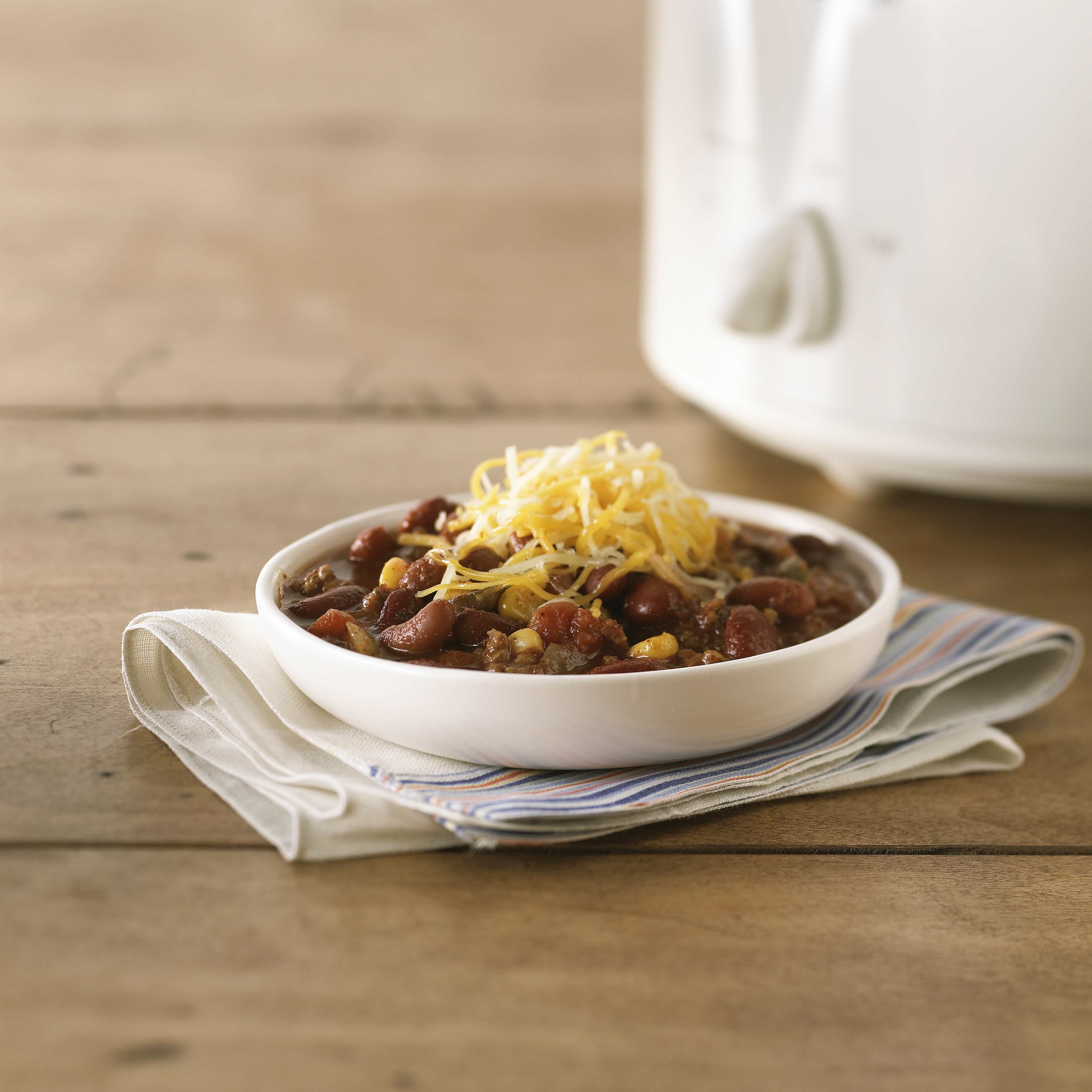 Combine beef, beans & cheese for a tasty foundation to this Slow-Cooker Beef Chili. Serve this Slow-Cooker Beef Chili with sour cream & saltine crackers.