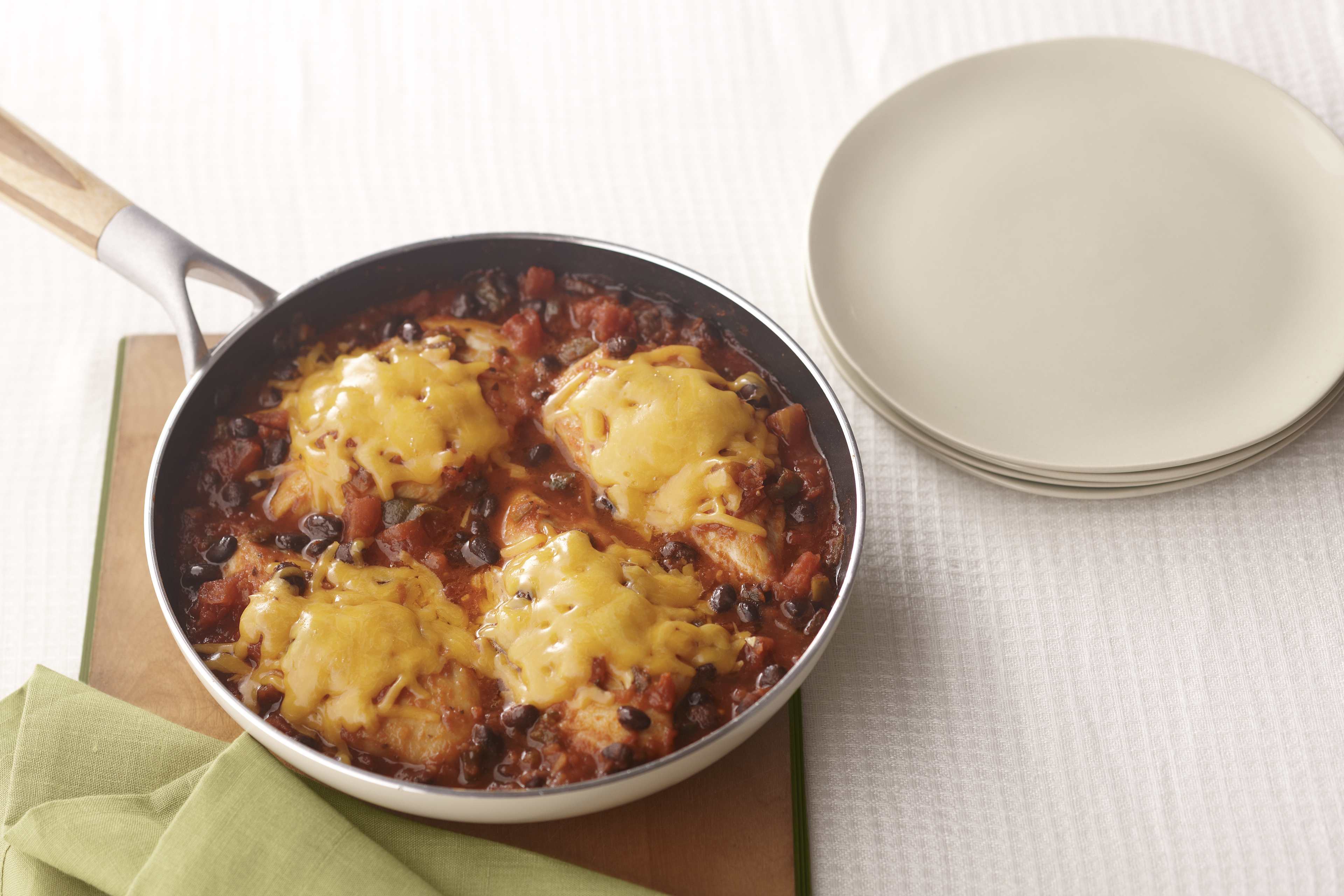 Use your skills to make our Saucy Mexican Chicken skillet! Salsa, black beans and cheddar cheese make this Mexican chicken recipe so delicious.