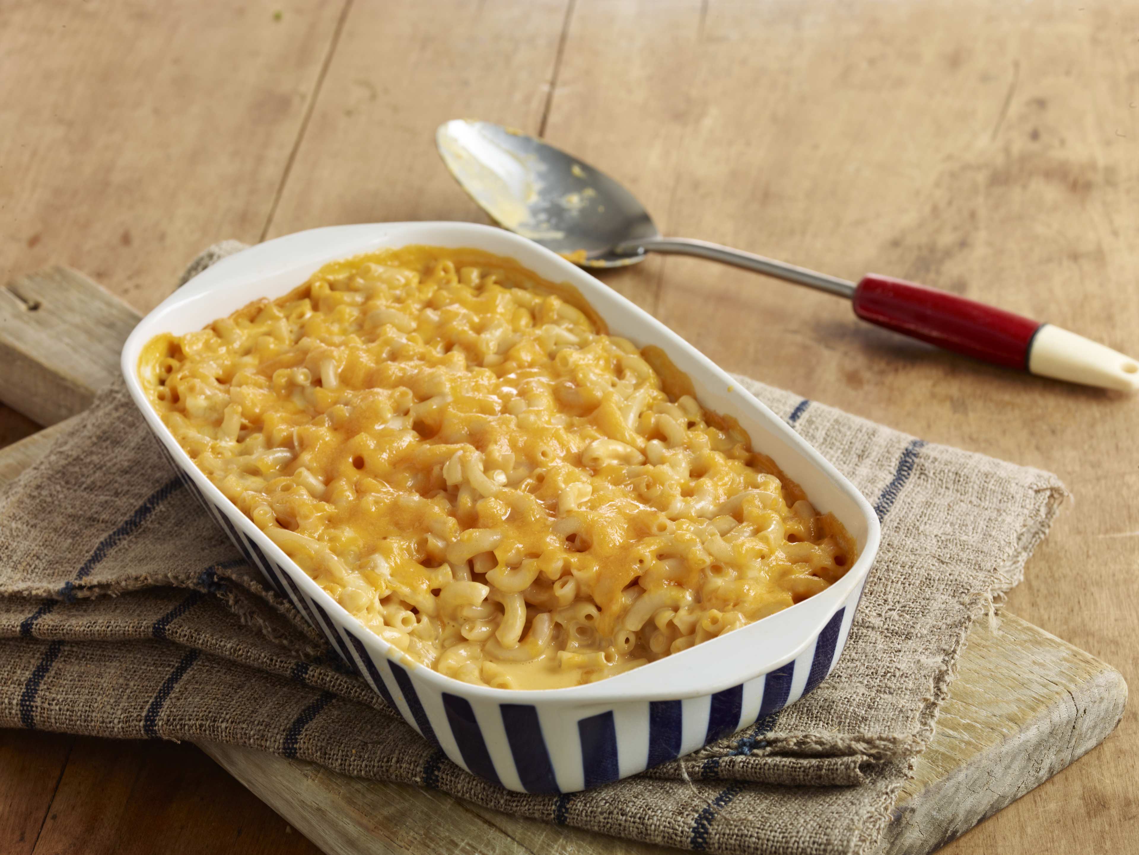 The macaroni and cheese dinner and the 2% Cheddar cheese in this low-calorie low-fat meal team up to provide a good source of calcium.