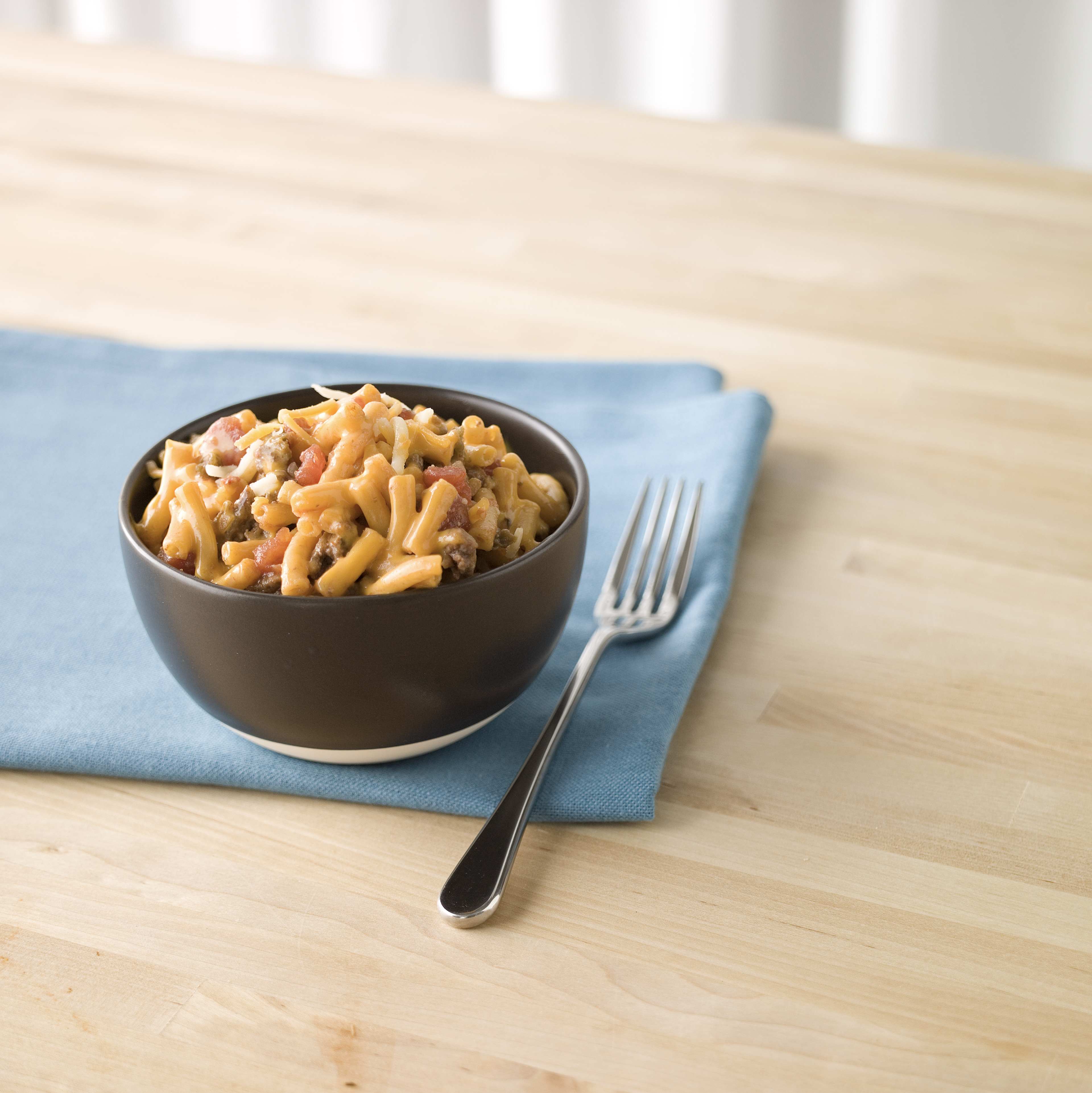 Want a hearty dish, quick? Beef up your mac and cheese with diced tomatoes, ground beef and sharp cheddar. Serves four in 20 minutes flat!