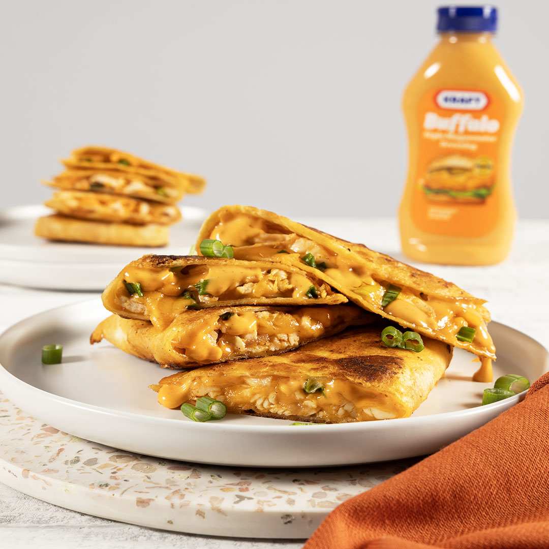 REPEAT with remaining quesadillas and remaining Buffalo Mayo.