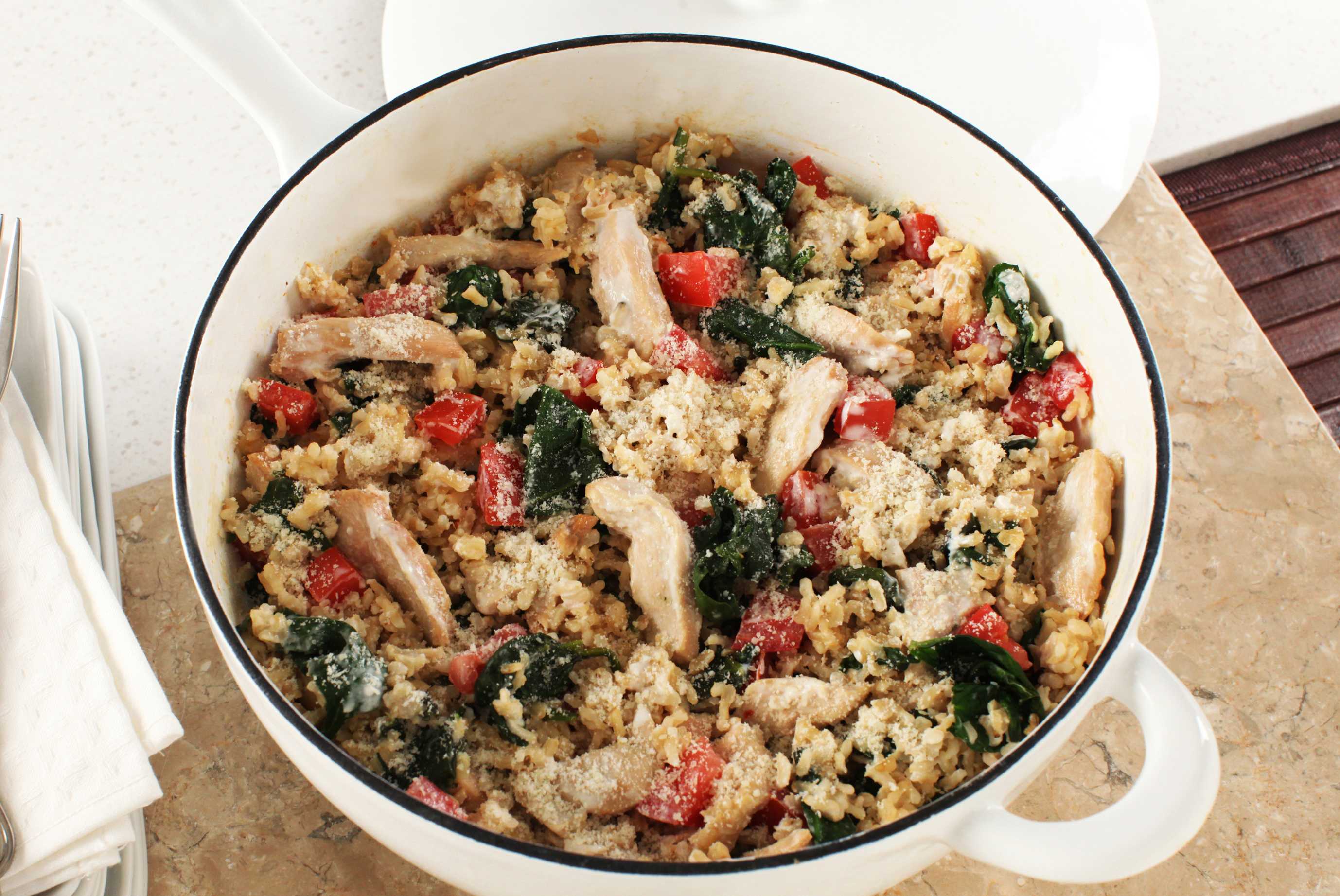 Create a Creamy Rice, Chicken & Spinach Dinner the whole family will love! Our Healthy Living chicken and spinach dinner is ready to eat in 35 minutes.
