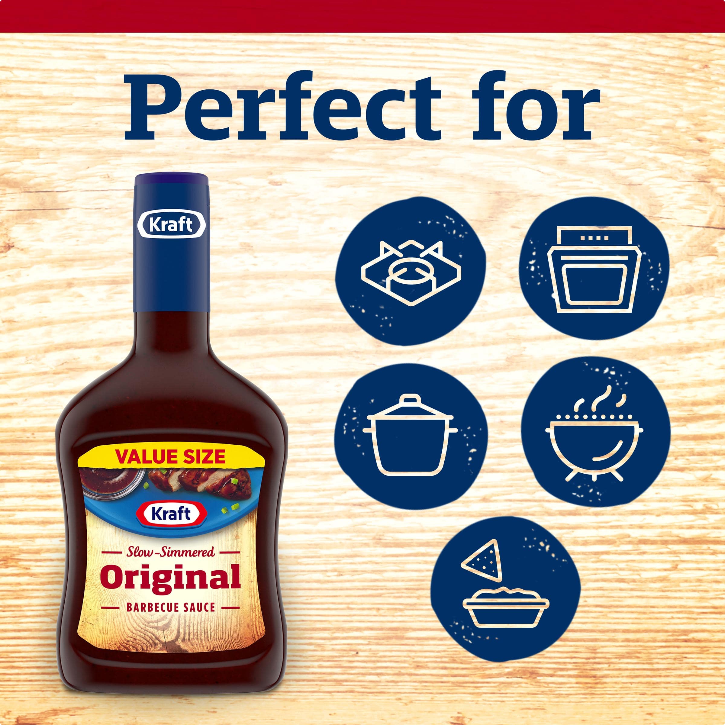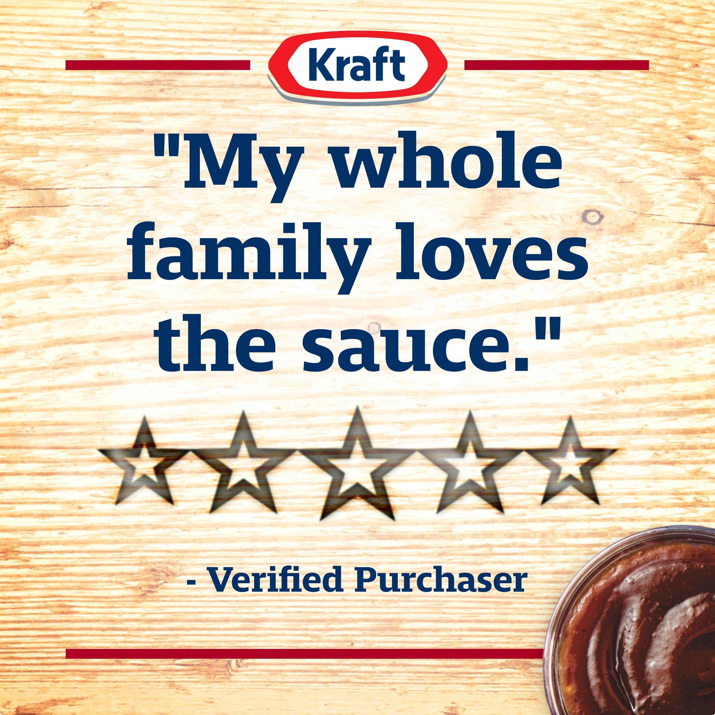 Kraft Original Slow-Simmered Barbecue Sauce & Dip adds bold, robust barbecue flavor to almost anything. Bursting with molasses, apple cider vinegar, spices and smoky hickory flavor, our 18 ounce resealable bottle of slow-simmered family favorite barbecue sauce delivers mouthwatering flavor in every bite. Kraft barbecue sauce is thick enough for spreading or dipping, and it makes a great meat marinade. Our barbecue sauce is a great addition to all your favorite family meals. Try using our barbecue sauce as a marinade for chicken, pork and beef, or as a dipping sauce for wings and nuggets.