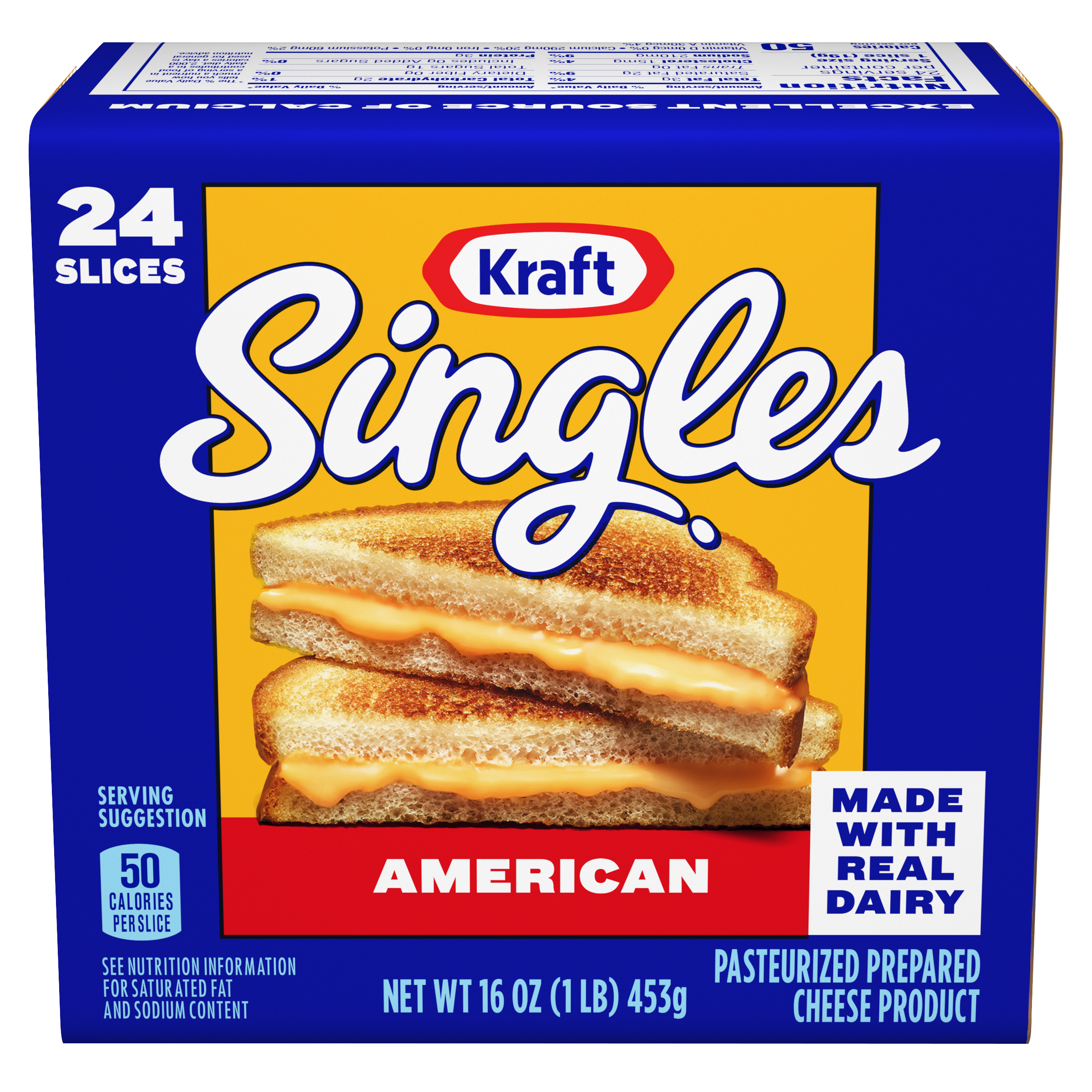 Delicious any way you square it, Kraft Singles American Slices deliver the classic American taste and irresistible melt that take your favorite foods to the next level. Made with real dairy and no artificial flavors, our singles have a mild, savory flavor and smooth, creamy texture that’s perfectly melty. Our simple squares are ideal for more than just grilled cheese. Try adding Kraft Singles to your breakfast sandwich, burger or tuna melt. Transform steak and bread into a Philly cheesesteak, put a twist on ramen or turn plain fries into ooey gooey cheese fries. When you’re craving classic comfort food, add America's favorite square to your mac and cheese for a simple joy that’s sure to make you smile. Each slice comes individually wrapped for convenience, so you can stack and snack any time. Kraft Singles contain 50 calories per serving. For optimal creamy goodness, keep our pack of 16 slices refrigerated.