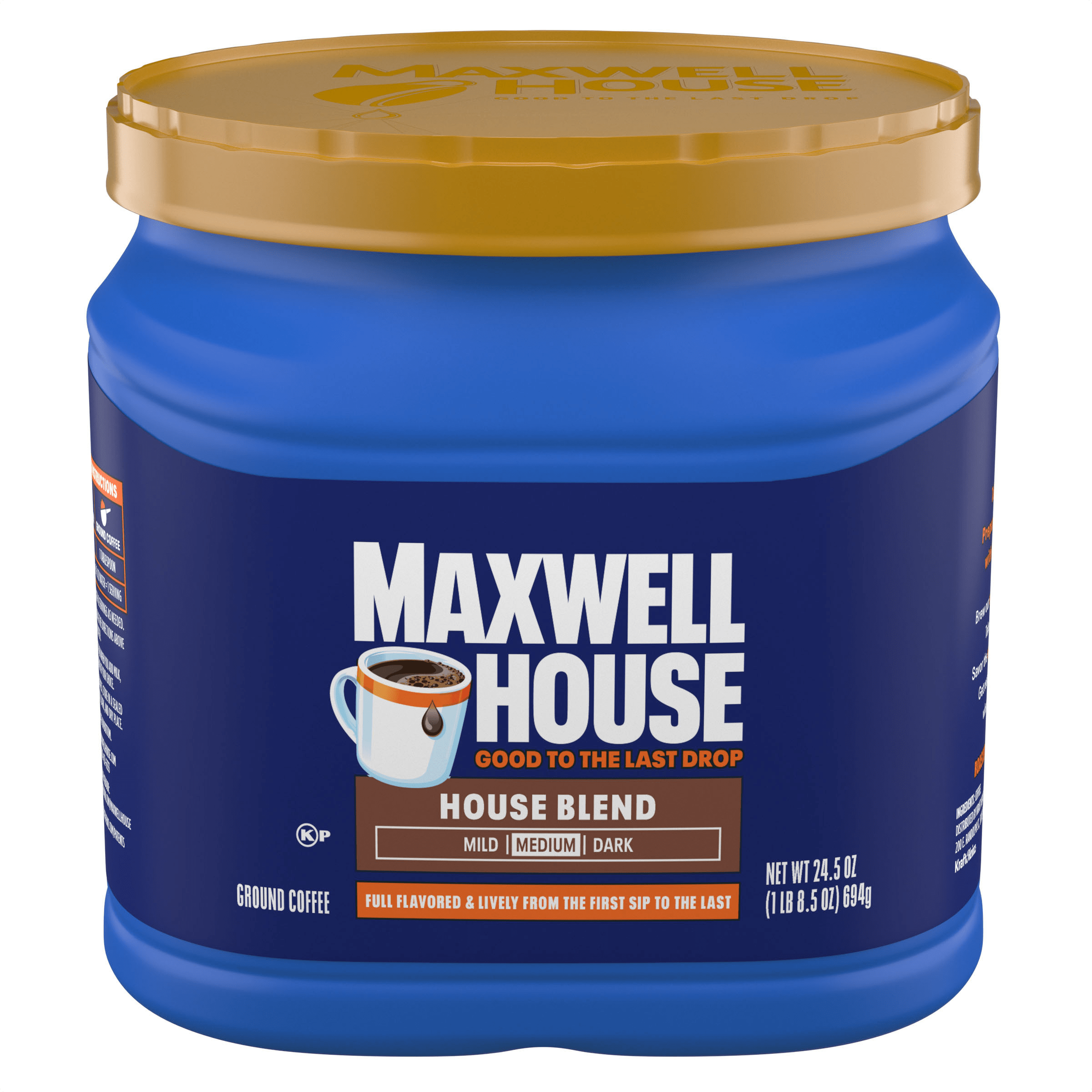 Take a break with the coffee that practically invented breaks. The day's been a whirlwind and it's far from over. But here's the thing — you're not stressing it. Because you've got it all figured out. You're gonna brew the medium roast made for kicking back and enjoying the aroma. Maxwell House House Blend Ground Coffee. Just sit back and savor every sip from your steaming cup full of strong, full-bodied Maxwell House flavor. Reset with that consistently delicious taste that hits the spot from the very first sip to the very last drop. And when that cup's empty and you're finally fueled up, you can squint your eyes, gather your gear and roll up your sleeves. Now you're ready to tackle anything, and there’s plenty of Maxwell House House Blend Medium Roast Ground Coffee ready for you in your 24.5-ounce canister. Let's show 'em what you're made of. Maxwell House. To Your Max.