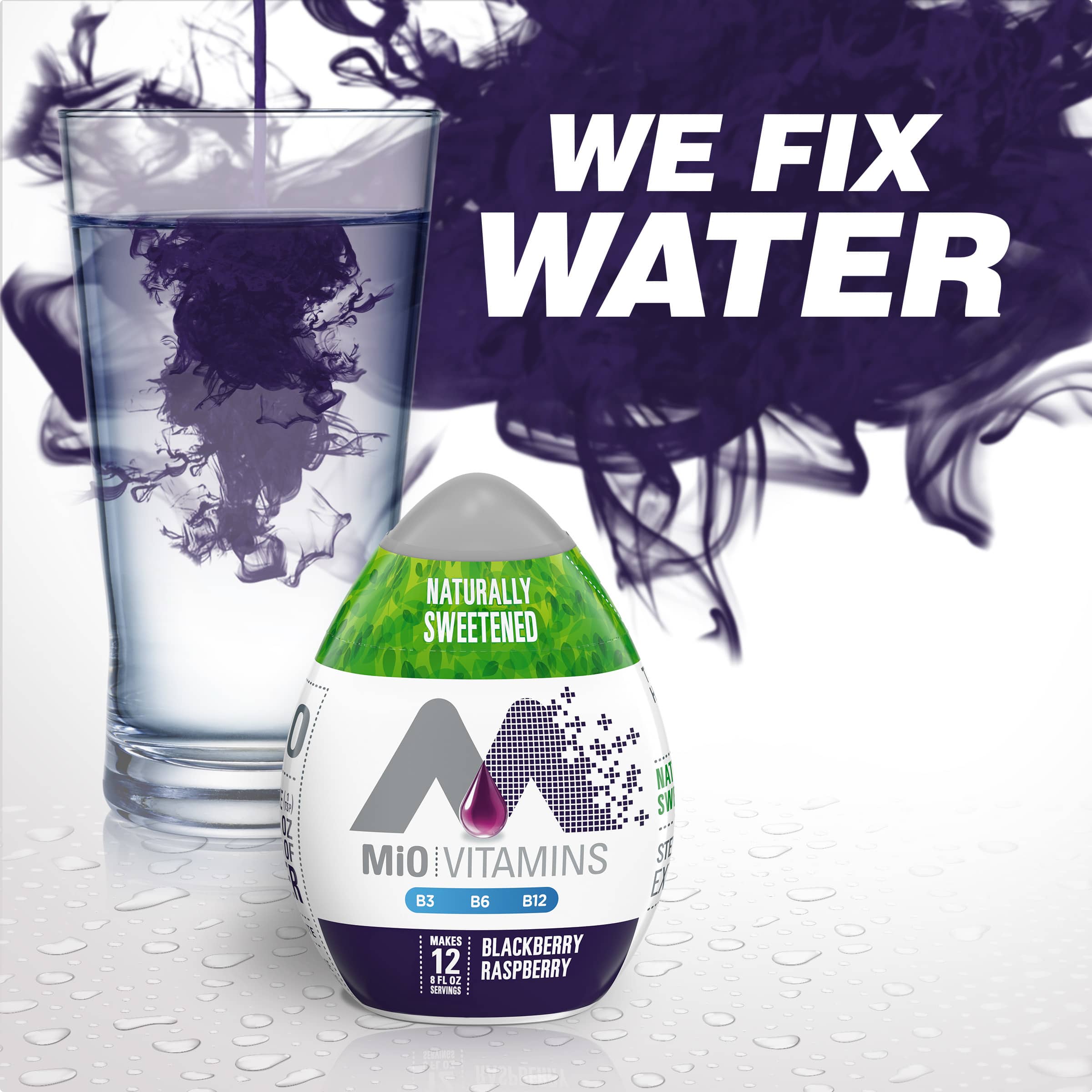 MiO Vitamins Naturally Flavored Blackberry Raspberry Liquid Water Enhancer fixes plain water with a boost of B vitamins, creating a refreshing drink...