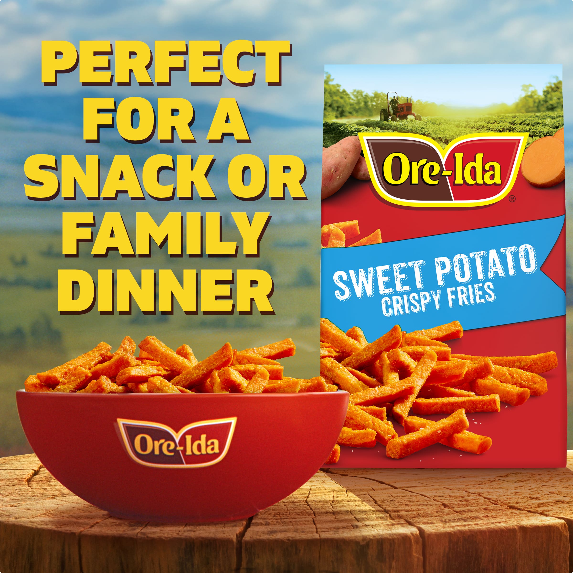 Crispy outside, fluffy inside, every time. Deliciously predictable, that’s Ore-Ida. Enjoy fries at home with Ore-Ida Sweet Potato Crispy Straight-Cut Fries. Ore-Ida sweet potato fries are gluten-free and have a uniquely satisfying crispiness and great flavor. Pop our frozen fries in the oven, air fryer or deep fryer and cook according to the package instructions for perfectly crispy fries every time. Serve our sweet potato fries with burgers, hot dogs, sandwiches and other favorites for a side dish everyone enjoys. Our frozen sweet potato fries come sealed in a 19-ounce bag for easy storage in your freezer. Ore-Ida believes that taste and quality matter and it has since 1952. That’s why we work tirelessly to bring you and your family perfect-tasting potatoes.