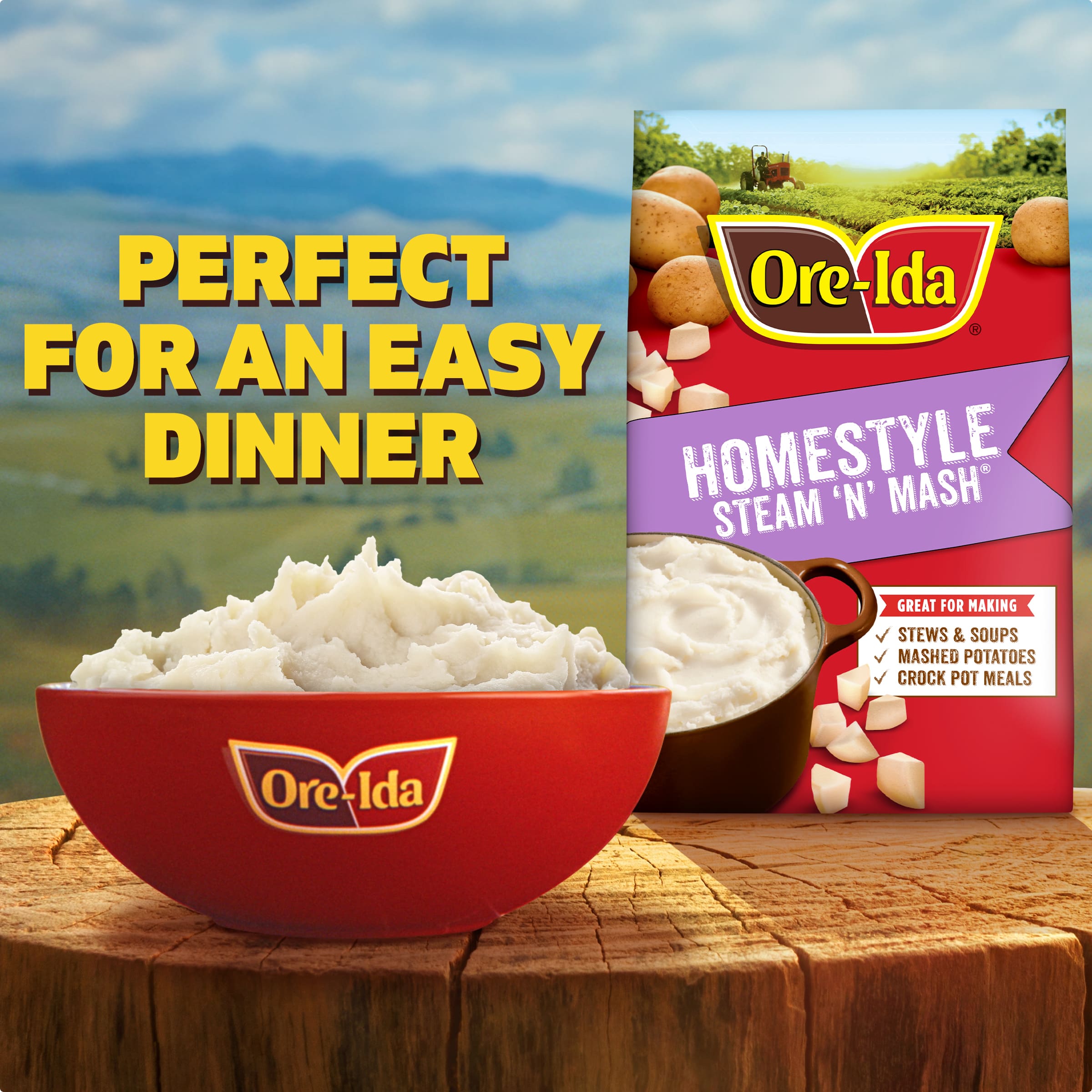 Deliciously predictable, that’s Ore-Ida. Ore-Ida Homestyle Steam 'N' Mash Recipe Ready Pre-Cut Russet Potatoes give you an easy way to enjoy the...