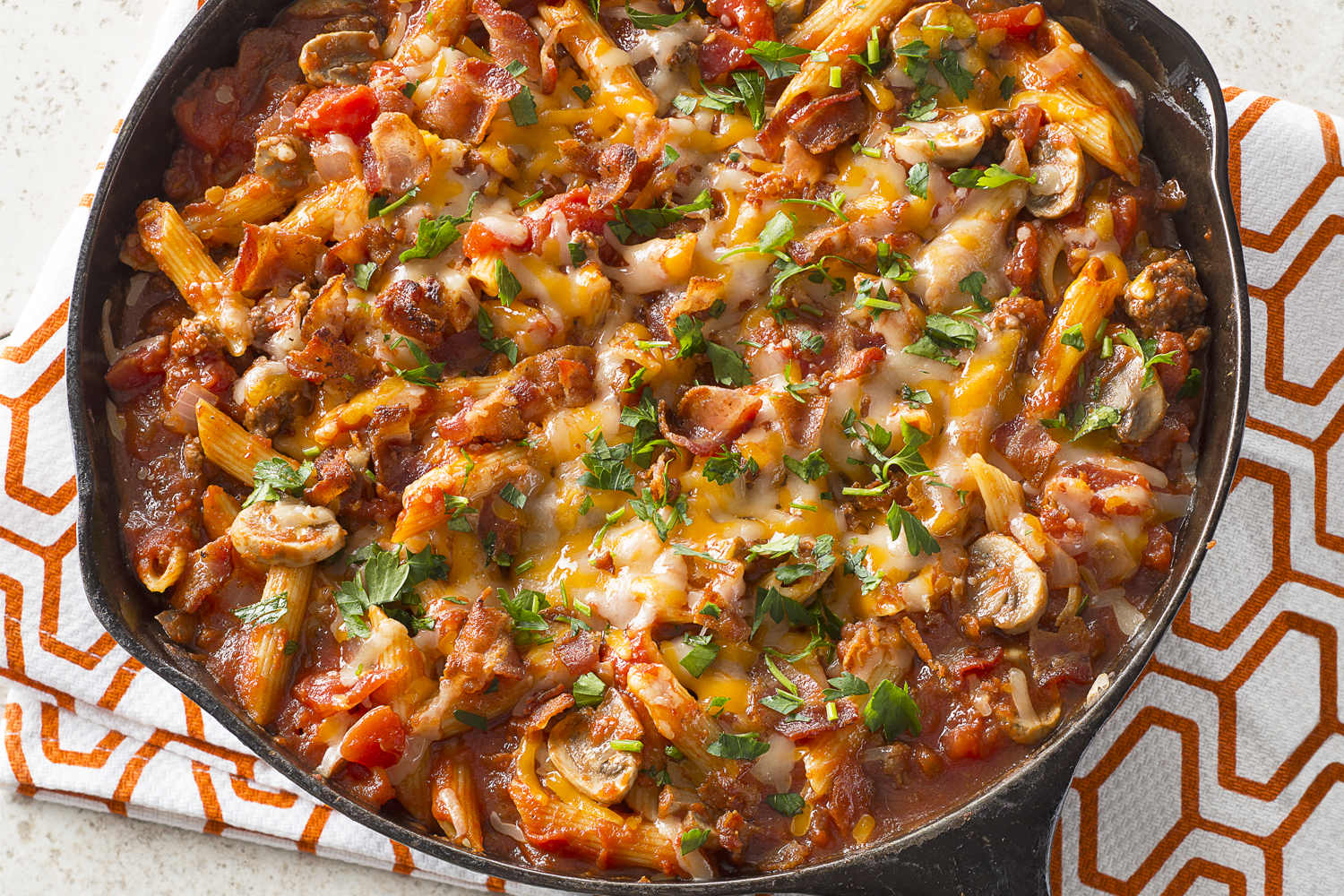 This pasta dish—full of fresh vegetables, ground beef, cheese and bacon—isn't just better for you. It's made in one pot, so cleanup's a breeze!