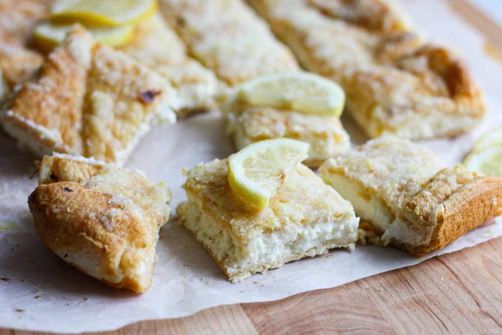 Meanwhile, separate 1 egg; refrigerate yolk until ready to use. Beat cream cheese, 1 cup sugar, flour, lemon zest, 2 Tbsp. lemon juice and vanilla in large bowl with mixer until blended. Add egg white and remaining 3 whole eggs, 1 at a time, mixing on low speed after each just until blended.