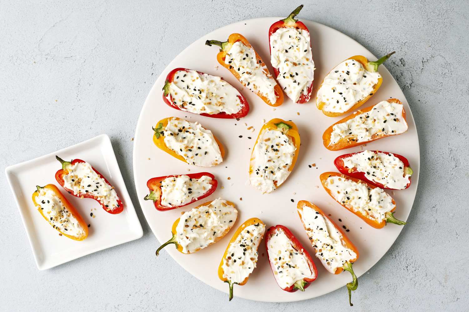 assorted mini sweet peppers (orange, red, yellow), cut lengthwise in half, seeded