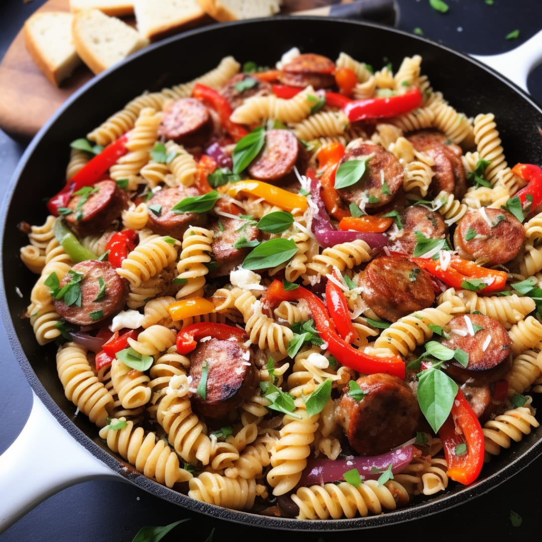 One-Pan Baked Cream Cheese Pasta with Chicken Sausage and Peppers
