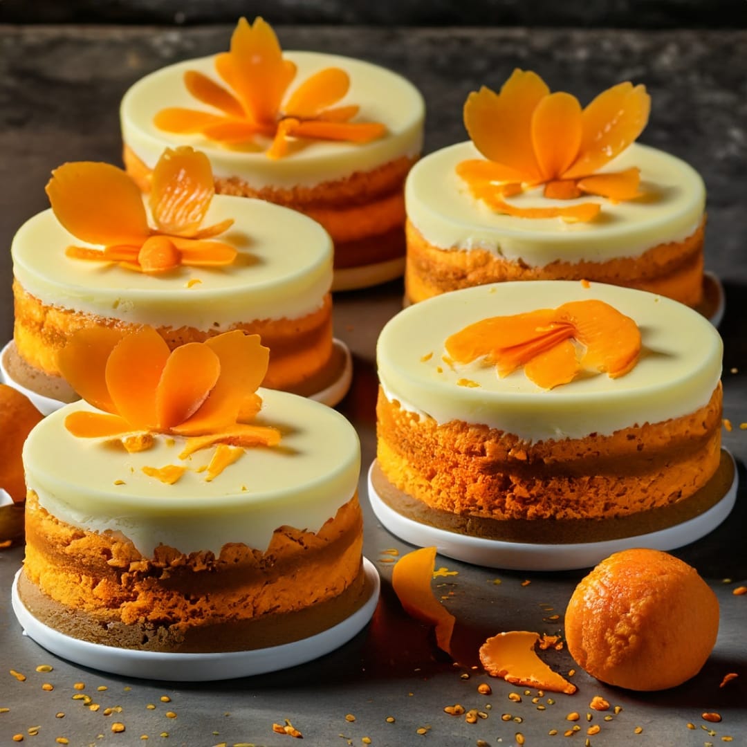 Beat whipping cream and remaining sugar in small bowl with mixer on high speed until soft peaks form; spoon over cheesecakes. Arrange tangerine segments on top of cheesecakes to resemble flowers as shown in photo.