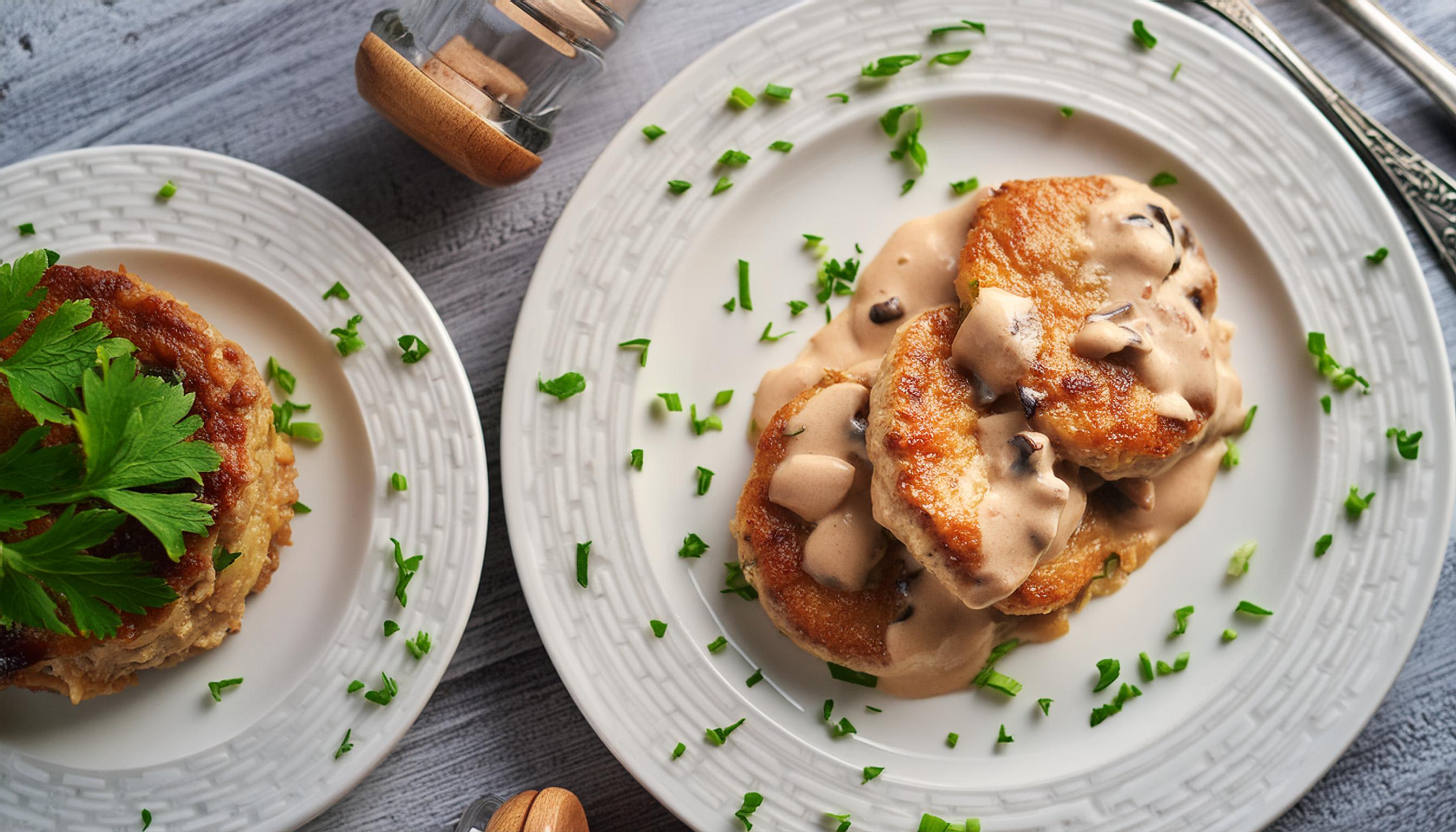 Pomidorowe placuszki z kaszy gryczanej z sosem pieczarkowym