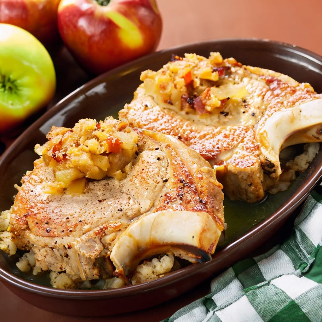 Discover how easy it is to make our Apple Pork Chops and Stuffing any night of the week. Our Apple Pork Chops and Stuffing preps in only 10 minutes.