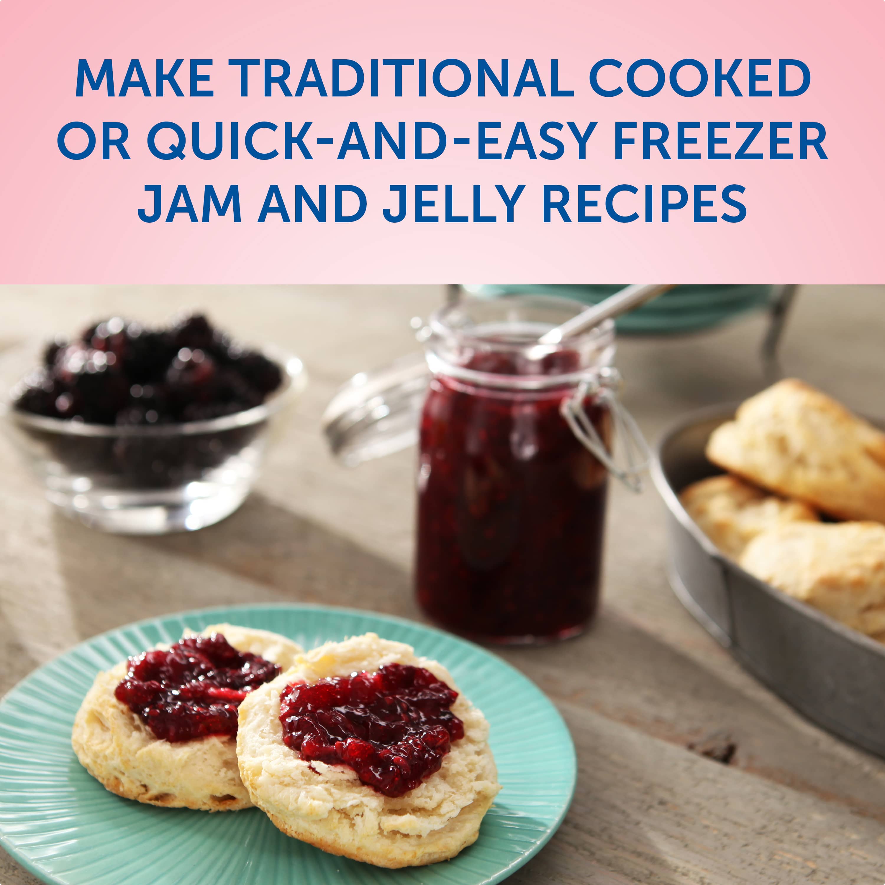Sure-Jell Premium Fruit Pectin is a kitchen staple for homemade jams and jellies. America's original since 1934, this premium gelling agent makes a great food thickener. Simply mix this powdered fruit pectin into traditional cooked or quick freezer jams to help your preserves thicken for the perfect set. Use it in less or no sugar strawberry jam, elderberry jelly or apricot jam, or try one of the quick and easy recipes inside the package. This premium pectin is a shelf-stable addition to your pantry's stabilizers and thickeners. This dry pectin powder will shorten the time needed to for homemade jams and jellies to set. Use your favorite fruits to create delicious homemade jams, and try one of the quick and easy recipes included in this pack!