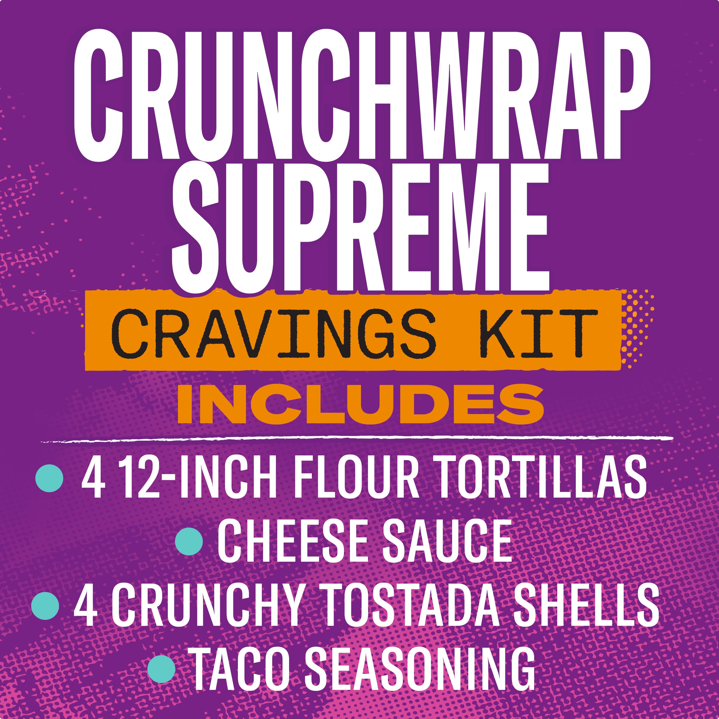 Cook what you crave with Taco Bell Crunchwrap Supreme Cravings Kits. Each DIY dinner kit contains four 12-inch flour tortillas, cheese sauce, 4...