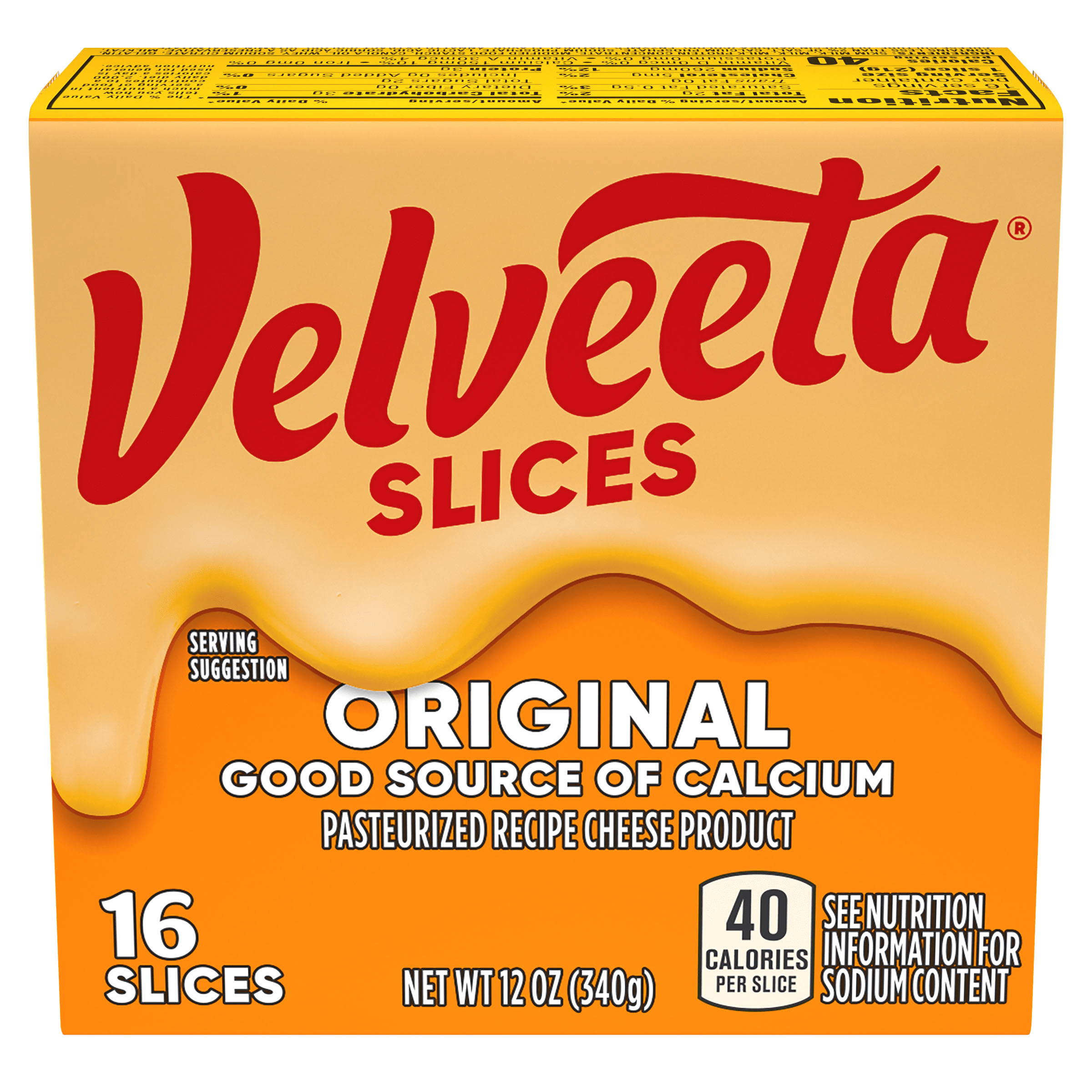 Live life to the creamiest with Velveeta Slices Cheddar Cheese. Made with real milk, our craveable individually-wrapped slices of Velveeta cheddar cheese are a good source of calcium. Each package contains 16 Velveeta cheese slices. When your drip is as smooth as ours, you don’t waste time when it comes to delicious, melty indulgence. For instant cheesy gratification, melt our Velveeta slices in a crisp, buttery grilled cheese sandwich or your favorite dip recipe. Try our cheese slices on a juicy grilled burger or with any side dish, entrée or snack worth elevating to icon status. Velveeta’s supremely creamy texture, epic meltability, and rich, savory taste will satisfy your cravings any day of the week. Sometimes unnecessary is necessary, so kick back, relax and embrace the flavor, unapologetically. That’s La Dolce Velveeta!