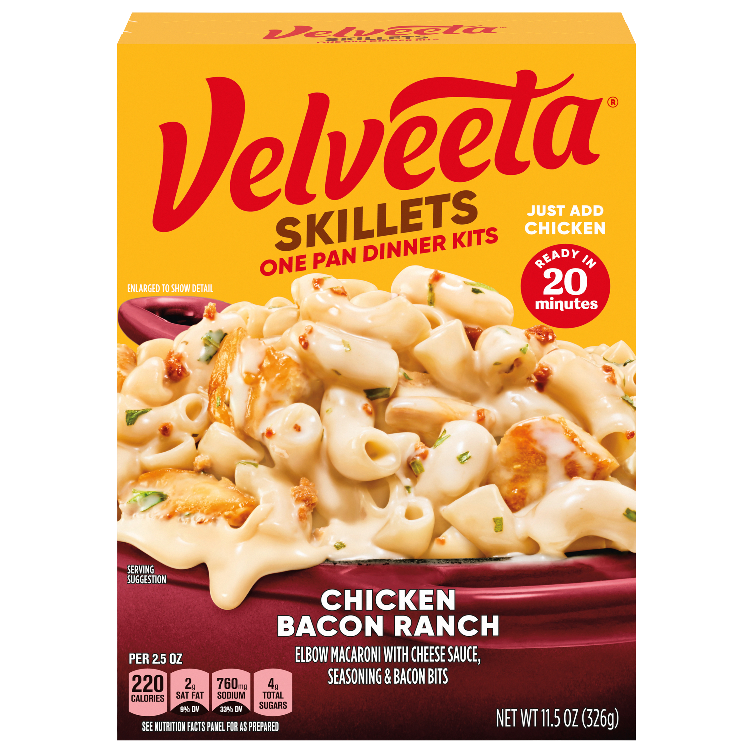 Mac and relax! Live life to the creamiest with Velveeta Skillets Chicken Bacon Ranch One Pan Dinner Kit. When your drip is as smooth as ours, you...