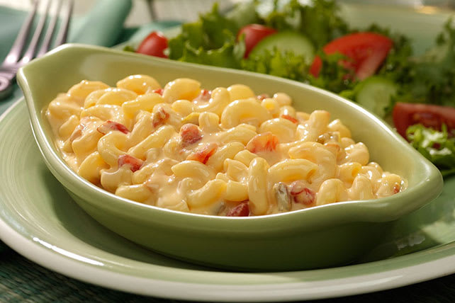 Diced tomatoes and green chilies make this mac and cheese as colorful as it is zesty.
