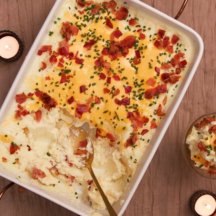 Spread the potato mixture into your prepared 9-by-13-inch pan. Smooth the top slightly before sprinkling the remaining 8 ounces cubed Velveeta® over the top and a few grinds of freshly ground black pepper. Bake for 30 minutes, or until warmed through and the top layer of Velveeta® has melted.